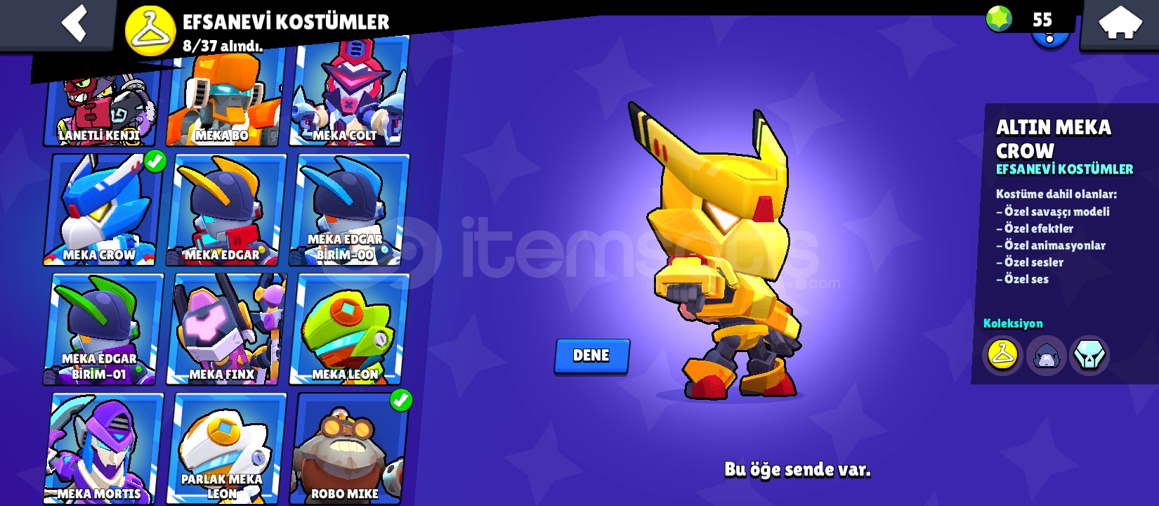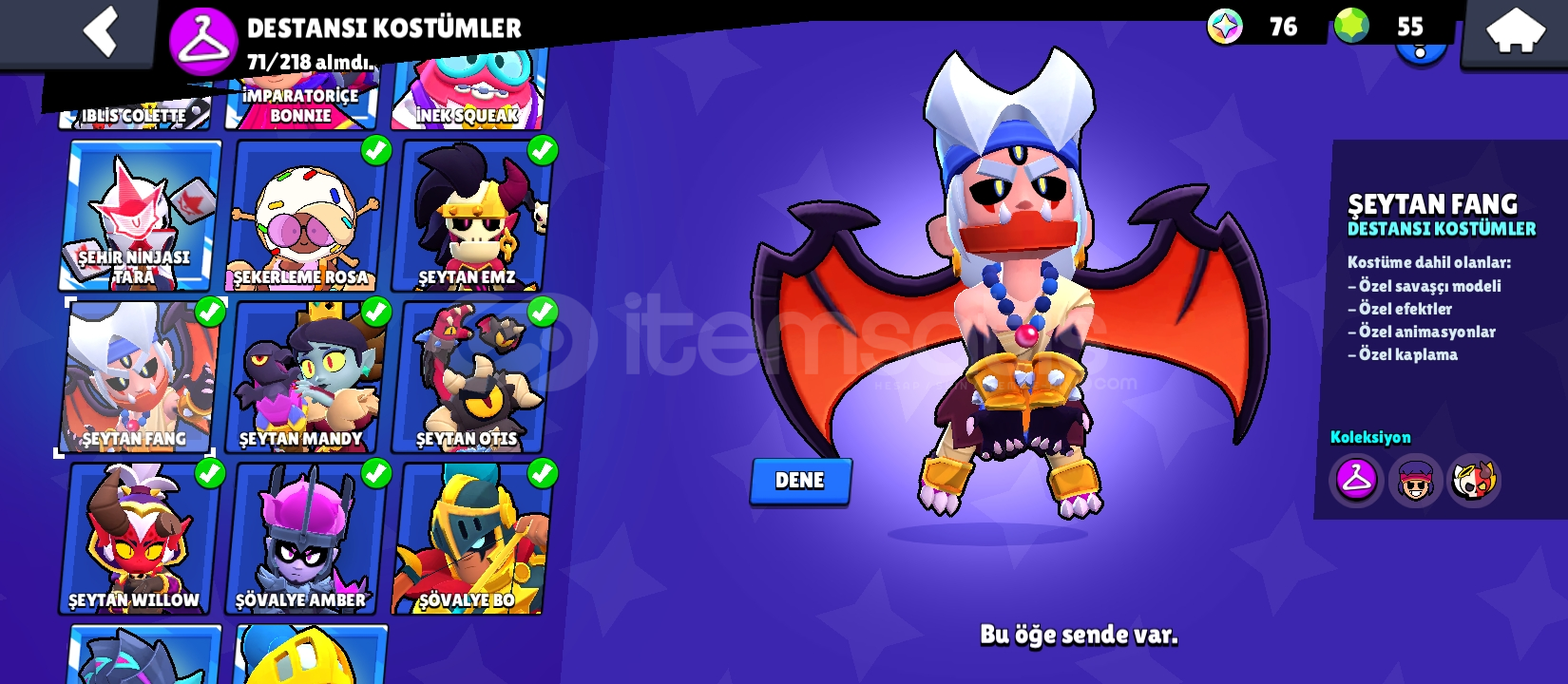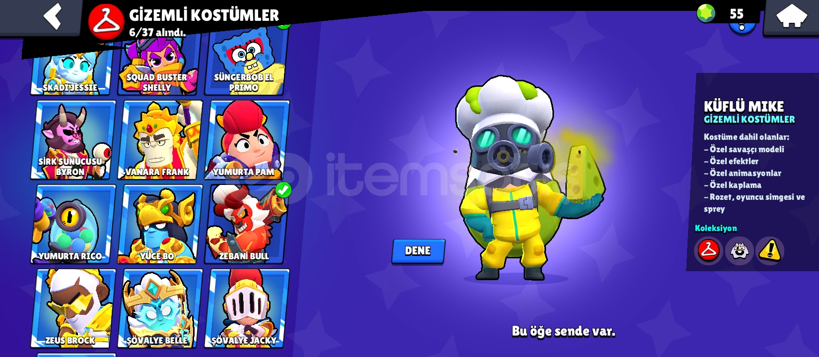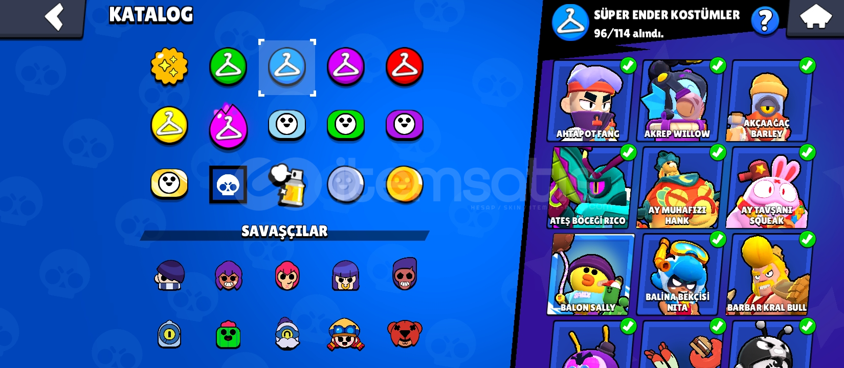 280kostüm 94karakter 64tanesi 11 seviye 56 hiperşarj açık değerli kostümler var hepsini tek tek koyamadım ciddi alıcılar yazsın aktif olarak oynuyorum.