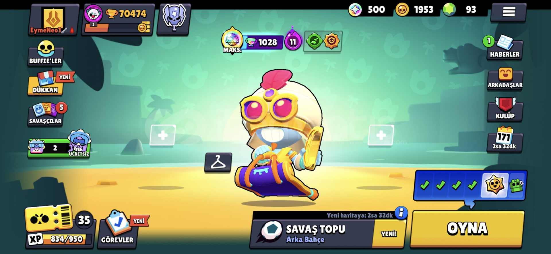 35 DEN FAZLA KARAKTERDE 11 SEVİYE FULL HİPERŞARJ + FULL YILDIZ GÜCÜBÜTÜN KARAKTERLER AÇIKTIR10/7 HİPERŞARJ KÖSTÜMÜ NEREDEYSE OYUNDAKİ BÜTÜN HİPERŞARJ KÖSTÜMLERİ VARDIR70K KUPA EMEK HESABIHESAP HAKKINDA DETAYLI BİLGİ İÇİN DM.