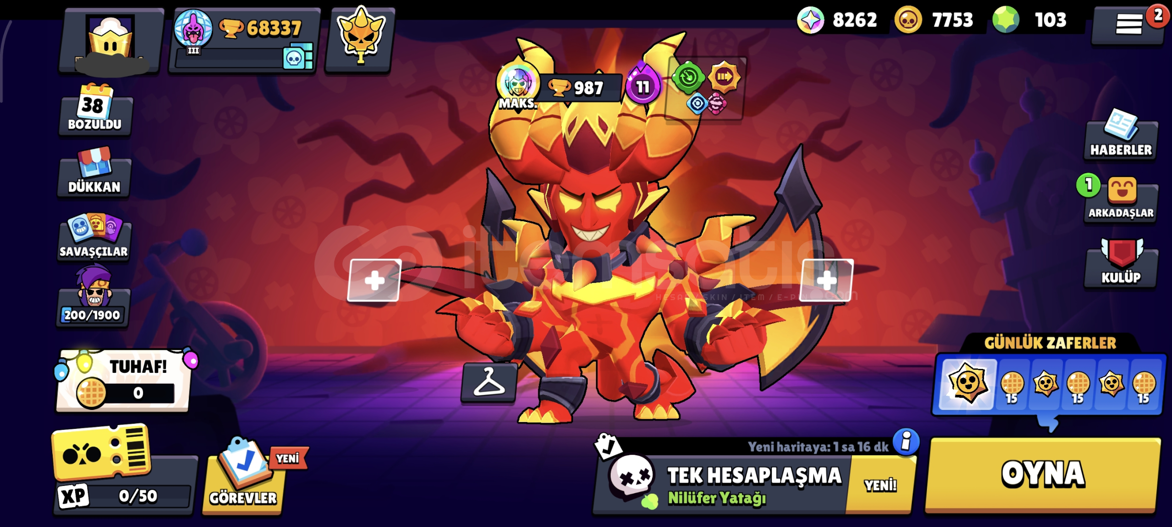 Hesap ile ilgili genel bilgiler ;-hesap güncel olarak 68.337 kupaya sahiptir ve hesap içerisinde 95/96 karakter mevcutHesap içerisindeki kostüm sayısı ;79 Ender73 Süper Ender57 Destansı8 Gizemli7 Efsanevi8 Hipersarj kostümü*** 9500 kupa clasroyale hesabı hediyedir ***