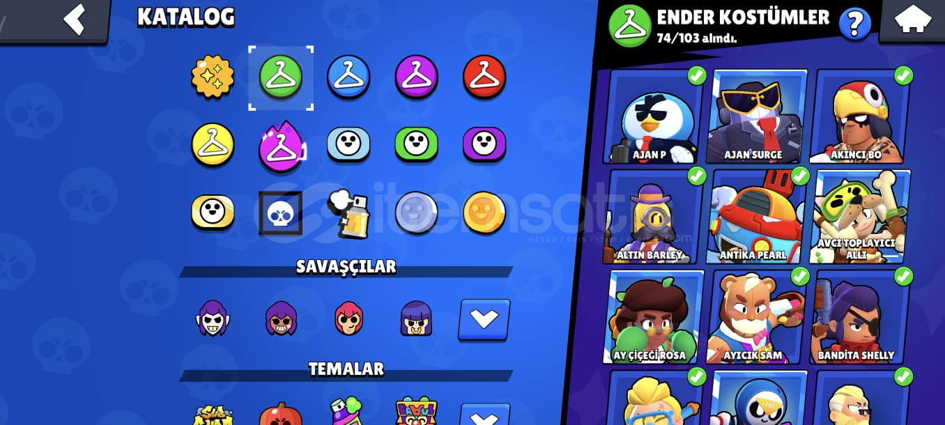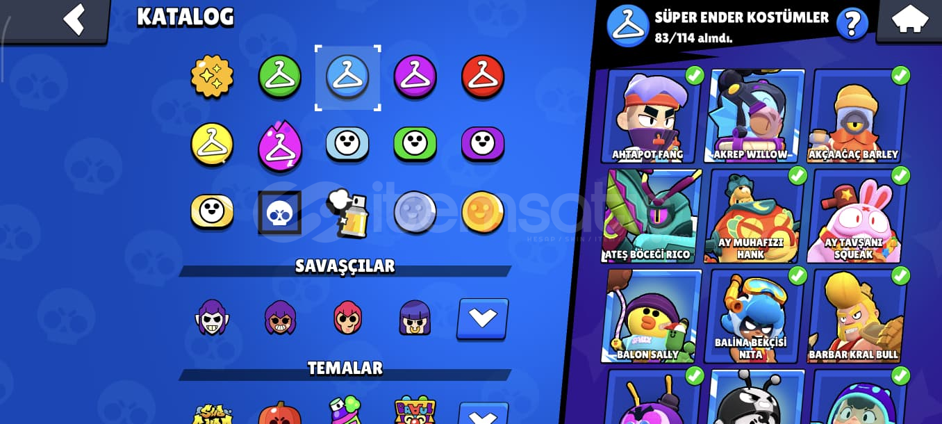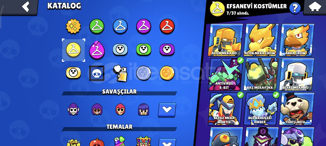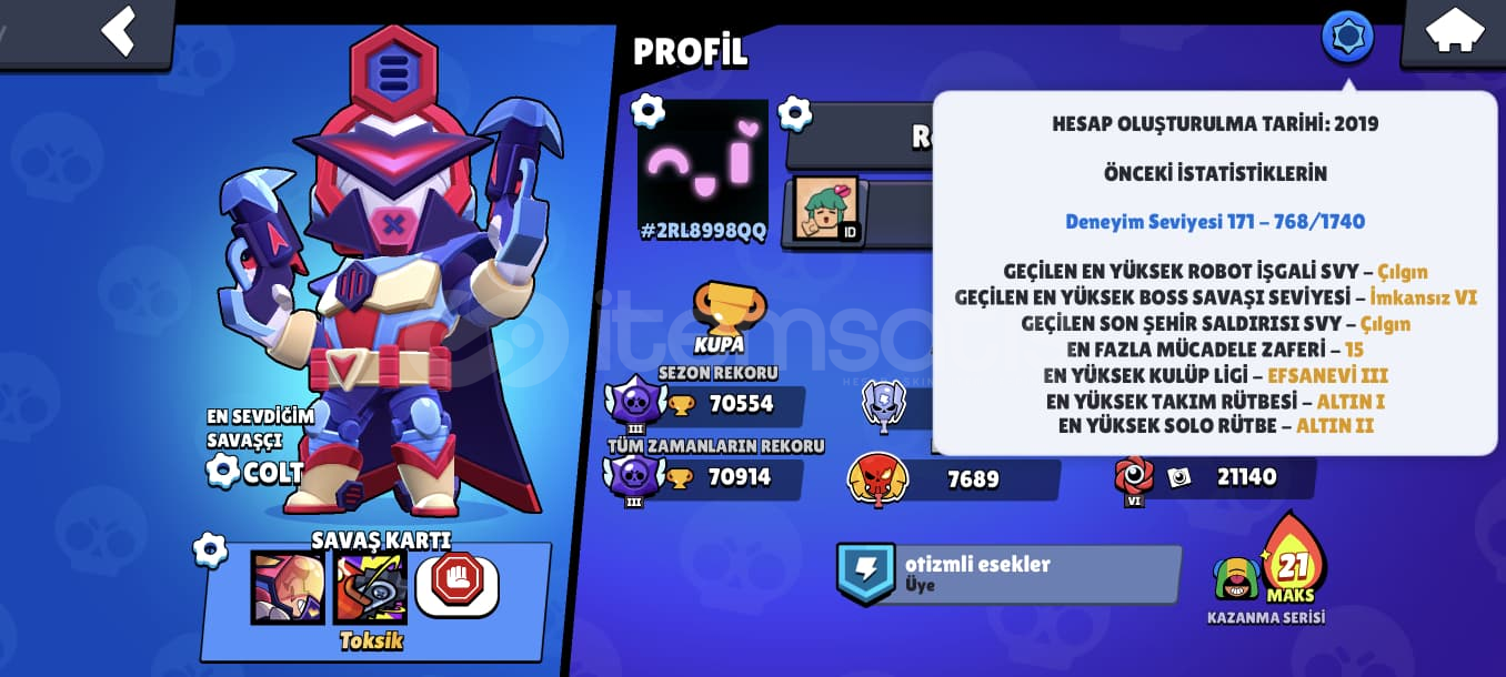 2019dan kalma son gelen 2 karakter yok(oyunu saldim) 70k mars 3 sohreti 2 defa bpplus alinan 31 adet karakter 1k olan bir hesap 4 kere ranked icinde efsanevi oldum supercell id hesabi 6500tl (icinde 13.500k gormus clash royale hesabi da var) nerdeyse her supercell oyununda gecmisim var daha fazla detay dmden yazsin her detay konusulur hesap bana aittir