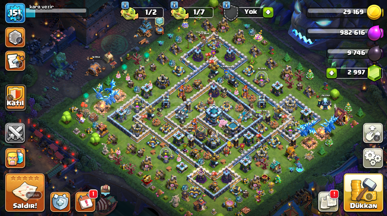 • hesapta 11 evrim vardır. (kraliyet devi, valkür, havan, bombacı, iskeletler, dev kar topu, tesla, cadı, okçular, pekka, barbarlar evrimleri vardır)