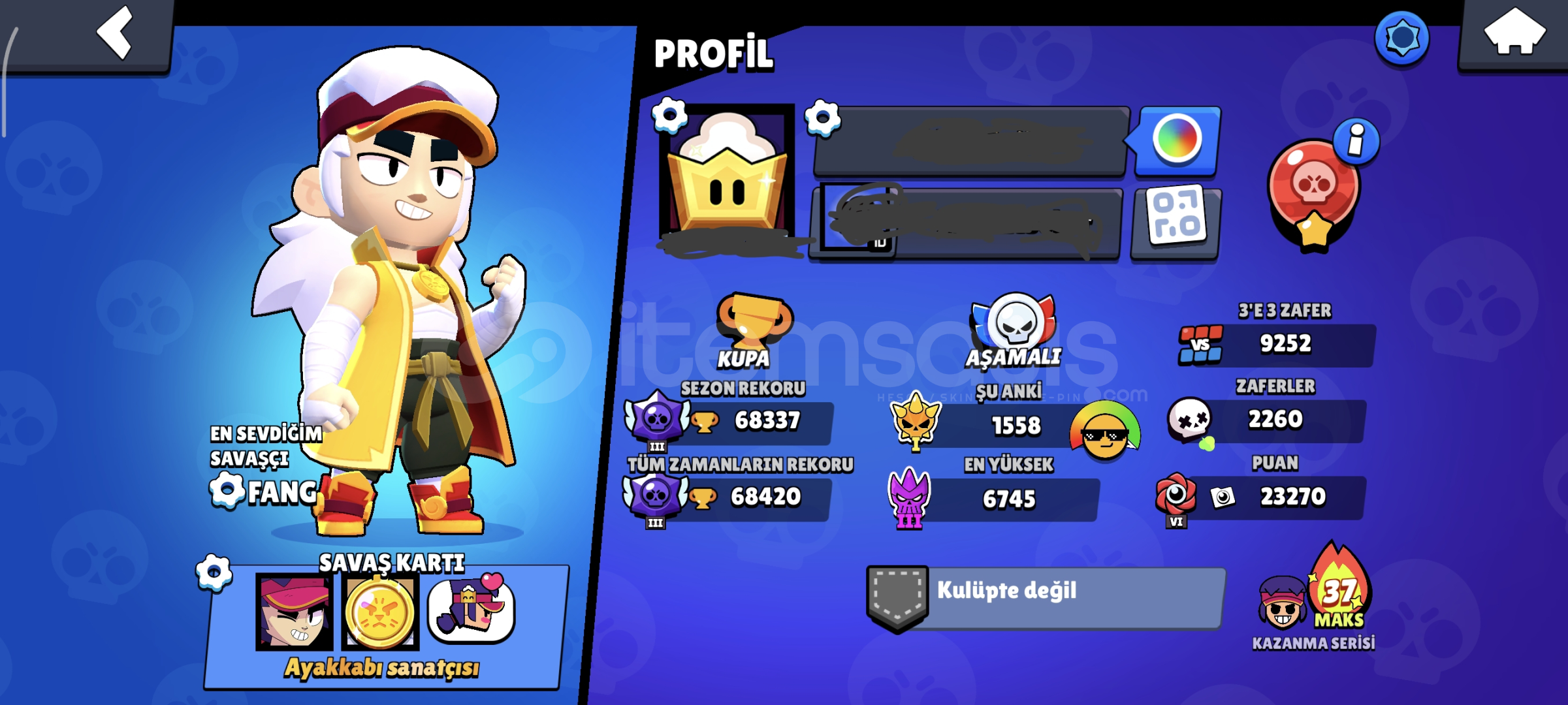Hesap ile ilgili genel bilgiler ;-hesap güncel olarak 68.337 kupaya sahiptir ve hesap içerisinde 95/96 karakter mevcutHesap içerisindeki kostüm sayısı ;79 Ender73 Süper Ender57 Destansı8 Gizemli7 Efsanevi8 Hipersarj kostümü*** 9500 kupa clasroyale hesabı hediyedir ***