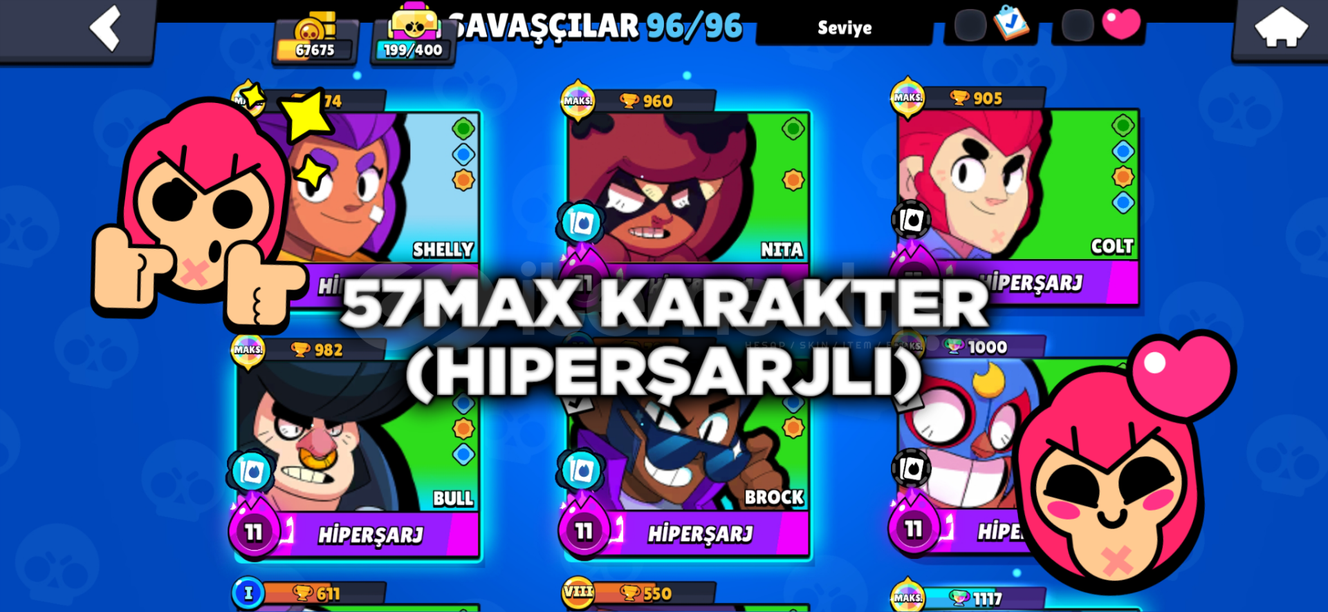 ⚡ SATILIK BRAWL STARS YOUTUBER HESAP ⚡Hesap Youtuber Hesabıdır, Bazı Youtuberler Eklidir,ban riski yoktur, güvenle devredilir,7000₺ Civarında Para Harcanmıştır📌 HESAP ÖZELLİKLERİ:🏆 Kupa: 70K💠 Saturn Şöhretli💜 57 Adet MAX + Hiperşarjlı Savaşçı👤 96/96 Savaşçı Açık🎭 Dev Skin KoleksiyonuEnder: 87/105Süper Ender...