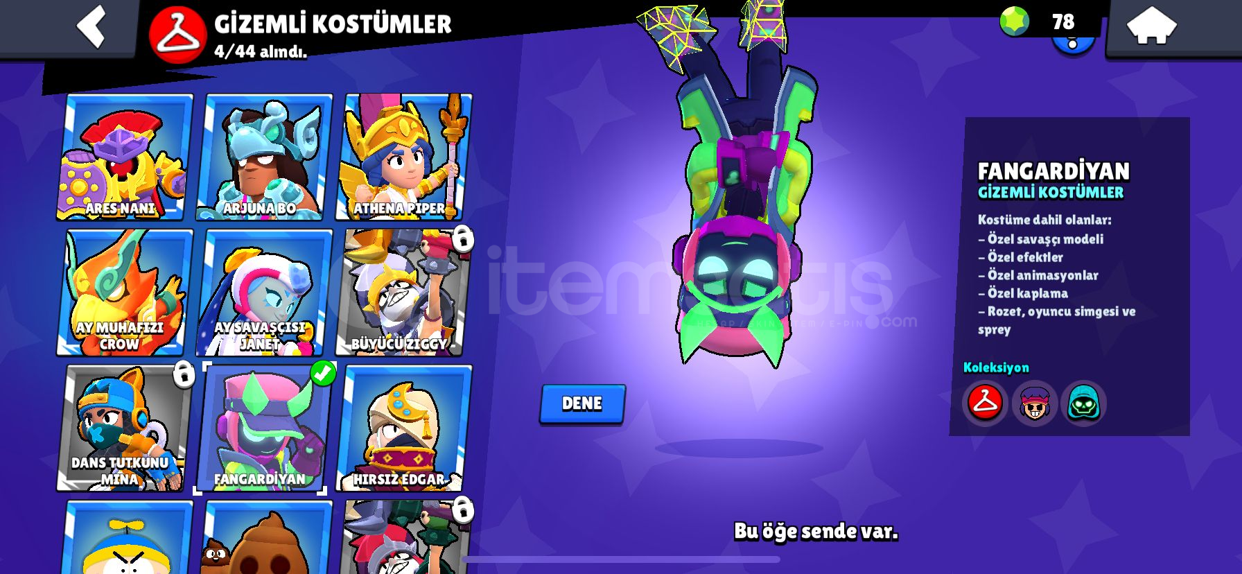 6 Efsanevi kostüm6 hipersarj kostum4 gizemli kostüm59 Destansı Kostüm79 Süper ender65 Ender kostümHesapta sizden başkası yoktur hesabın mailini değiştirip güvenle oynaya bilirsinizHesaptan olmadıgıma dair vidyo atılır