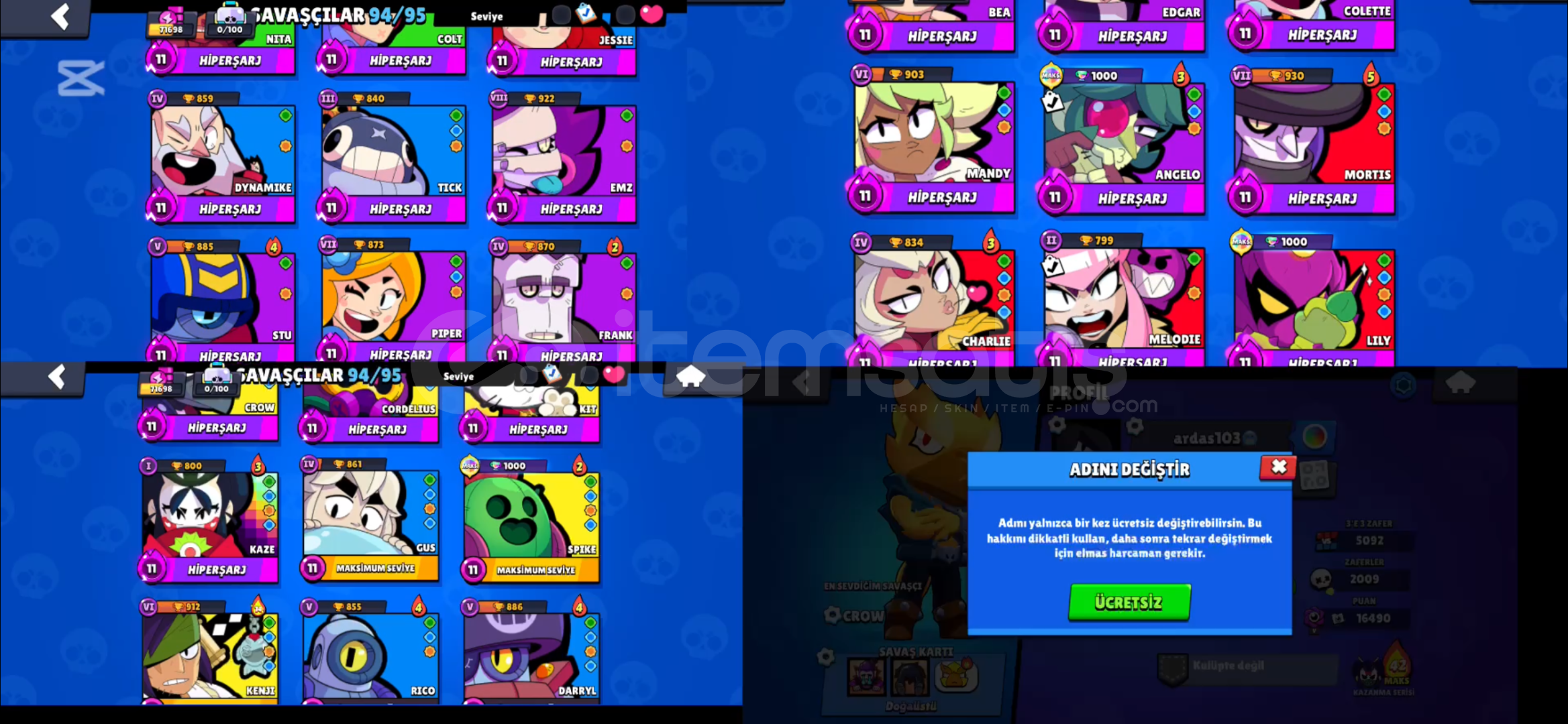 71k kupa 94 karakter bol kostümlü hesap77 ender 87 süper ender 98 destansı 12 gizemli 9 efsanevi 4 hiperşarj 1 gümüş 2 altın kostüm ücretsiz isim değiştirme