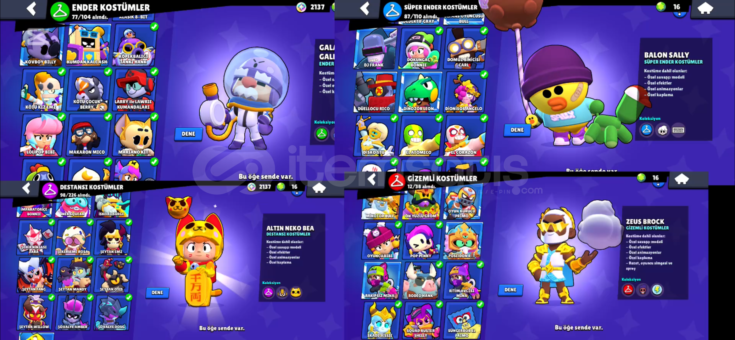 71k kupa 94 karakter bol kostümlü hesap77 ender 87 süper ender 98 destansı 12 gizemli 9 efsanevi 4 hiperşarj 1 gümü...