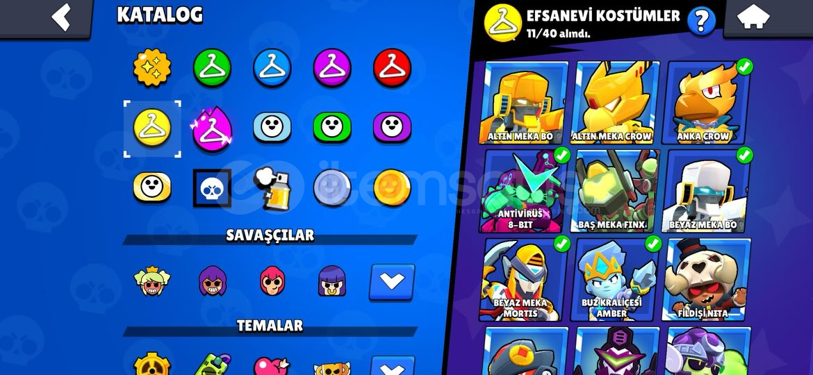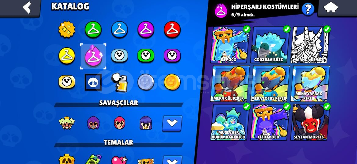 SKINLER *74 ENDER*79 SÜPER ENDER *125 DESTANSI *7 GİZEMLİ *11 EFSANEVİ *6 HİPER KOSTÜM 35 TANE HİPER ŞARJ MEVCUT EN DÜŞÜK SEVİYE 8 KAKRAKTERLER FULL100 ELMAS BULUNUYOR DETAYLI BİLGİ İÇİN SORMANIZ YETERLİ....