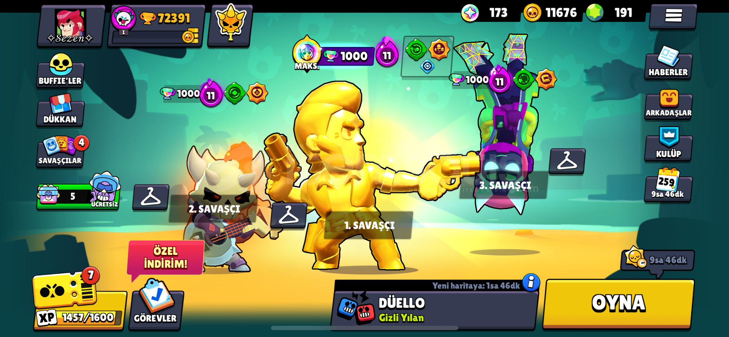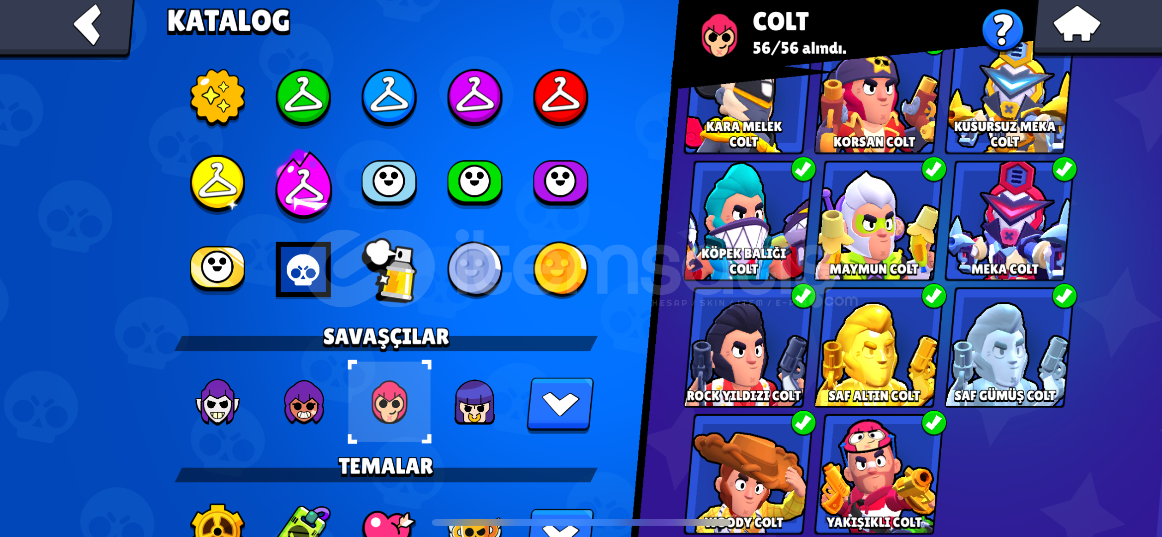 HESAPTA BULUNANLAR:•73 BİN KUPA (NEREDEYSE)•97 KARAKTER (FULL) •310 KOSTÜM (7 TANE HİPERŞARJ , 9TANE EFSANEVİ ,16 TANE GİZEMLİ KOSTÜM) •ŞÖHRET SEVİYESİ GÜNEŞ•2020 TARİHİNDE KURULDU •BİRKAÇ NADİR KOSTÜM(KORSAN COLT, WOODY COLT VB.) •14 ÜNVAN •1 KEZ GERÇEK PARAYLA BP ALINMIŞTIR •64...