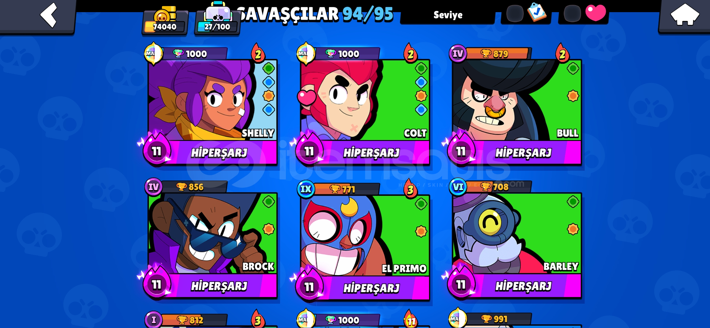 Hesap Sorunsuz 93 KarakterNerdeyse Çoğu karakter 11lvl en dusukleri 9lvlEski hesap15 mortis kostümü var fullBP bir kackez açılmış7700kupa CR hesabi bağlıNumara vs yok mail şifre ile verilir