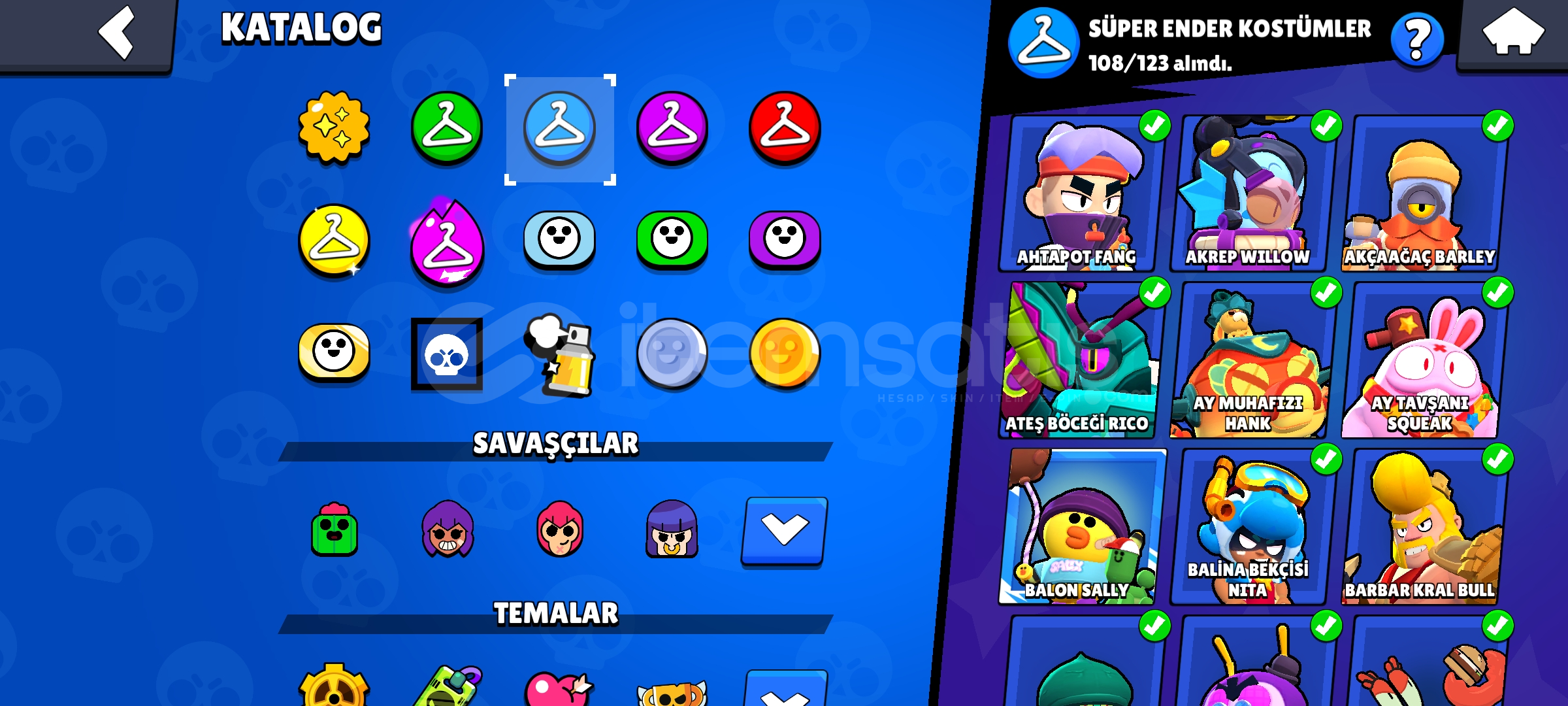 30 karakter hiperşarjlı 11 seviye20 karakter 11 seviye5 karakter 10 seviye19 tane 9 seviye20 tane 8 seviye karakter vardır.Direktmen süpercell hesabı verilecektir içinde clash of clans hesabı da vardır alana hayırlı olsun.