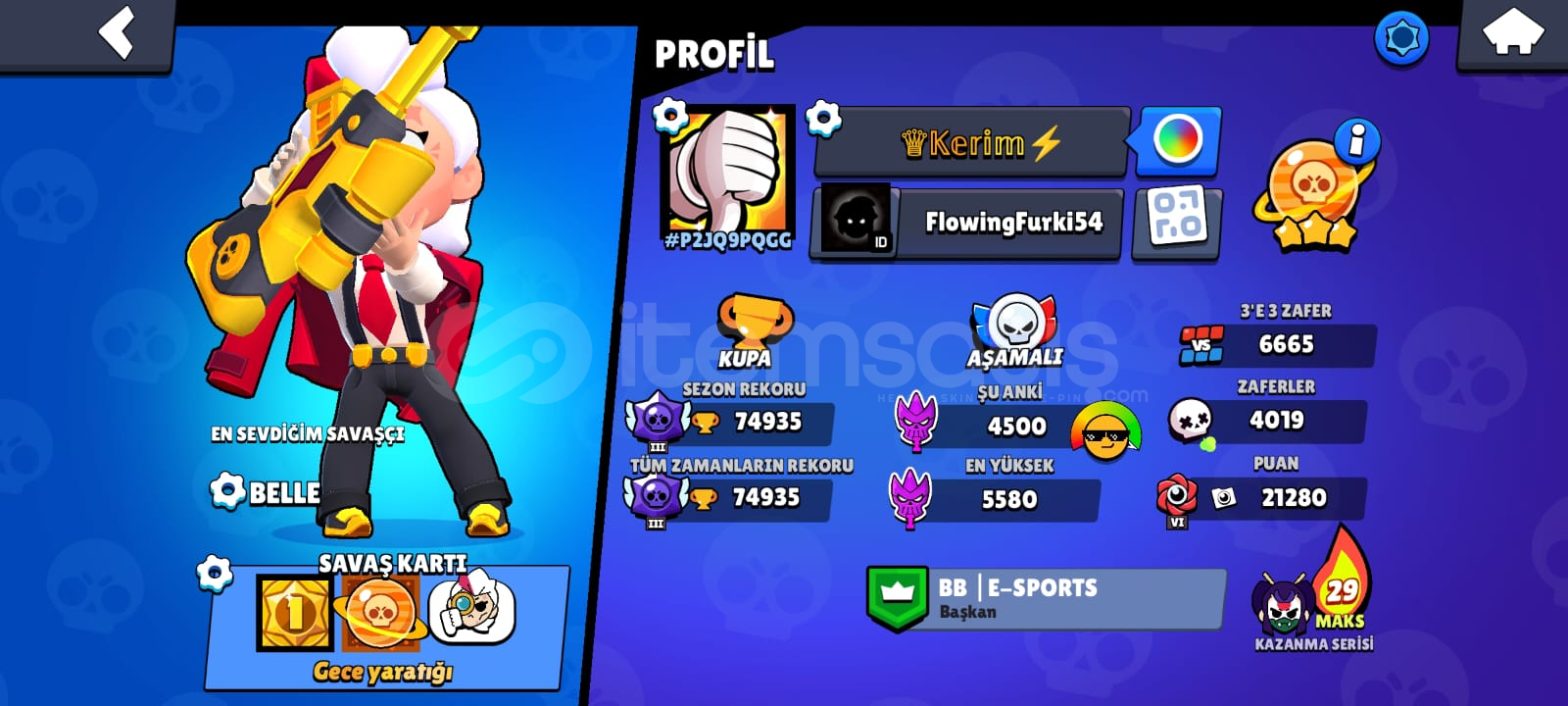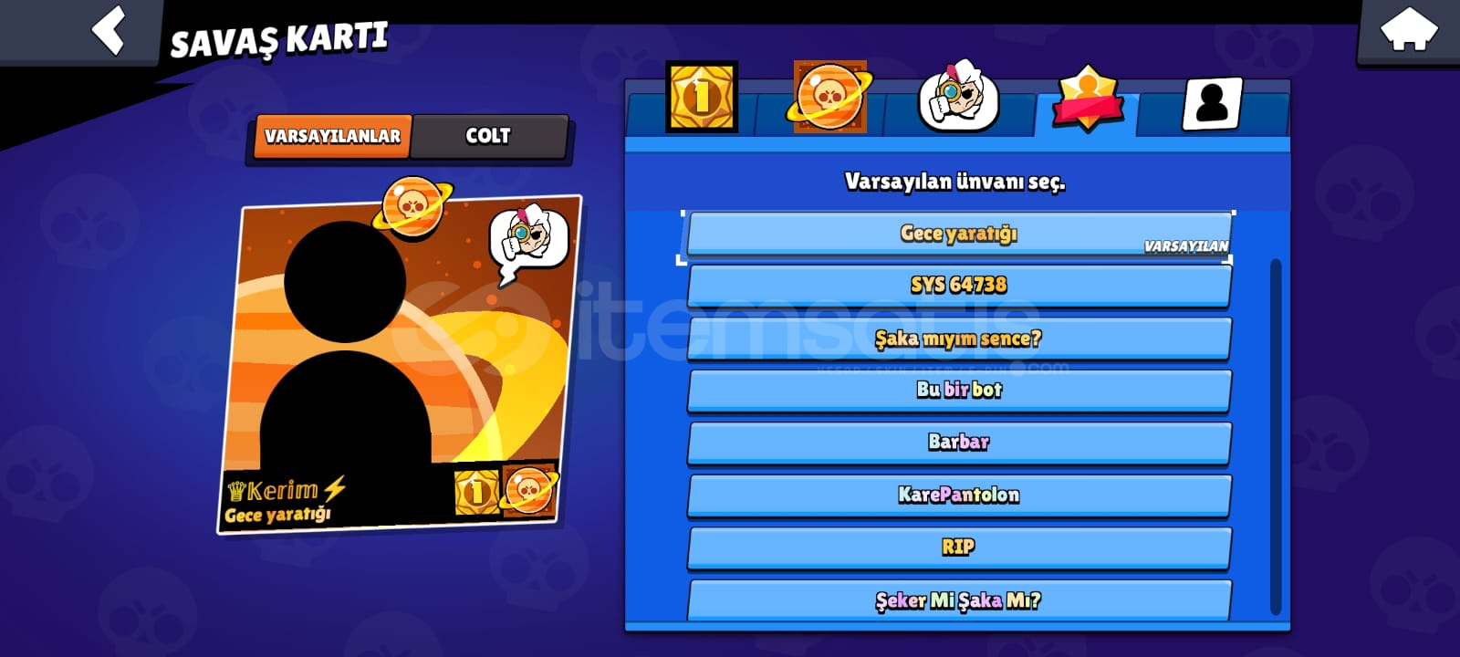 Merhaba arkadaşlar Hesap 75k Nadir Sağlam Satürn 3 Güneşe 1k kredi varNadir Kostümler;Altın El BelleSilahşör ColtNinja AshPrenses ShellyRicocheatKostümler3 Hipersarj7 Efsanevi kostüm5 Gizemli94 Destansı86 Süper Ender88 Ender8 ÜnvanPazarlık yapılırDosta gider