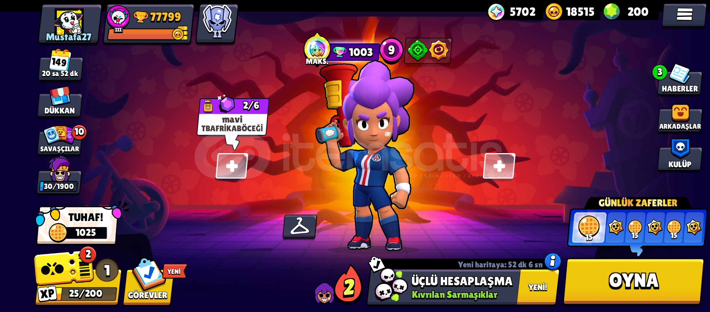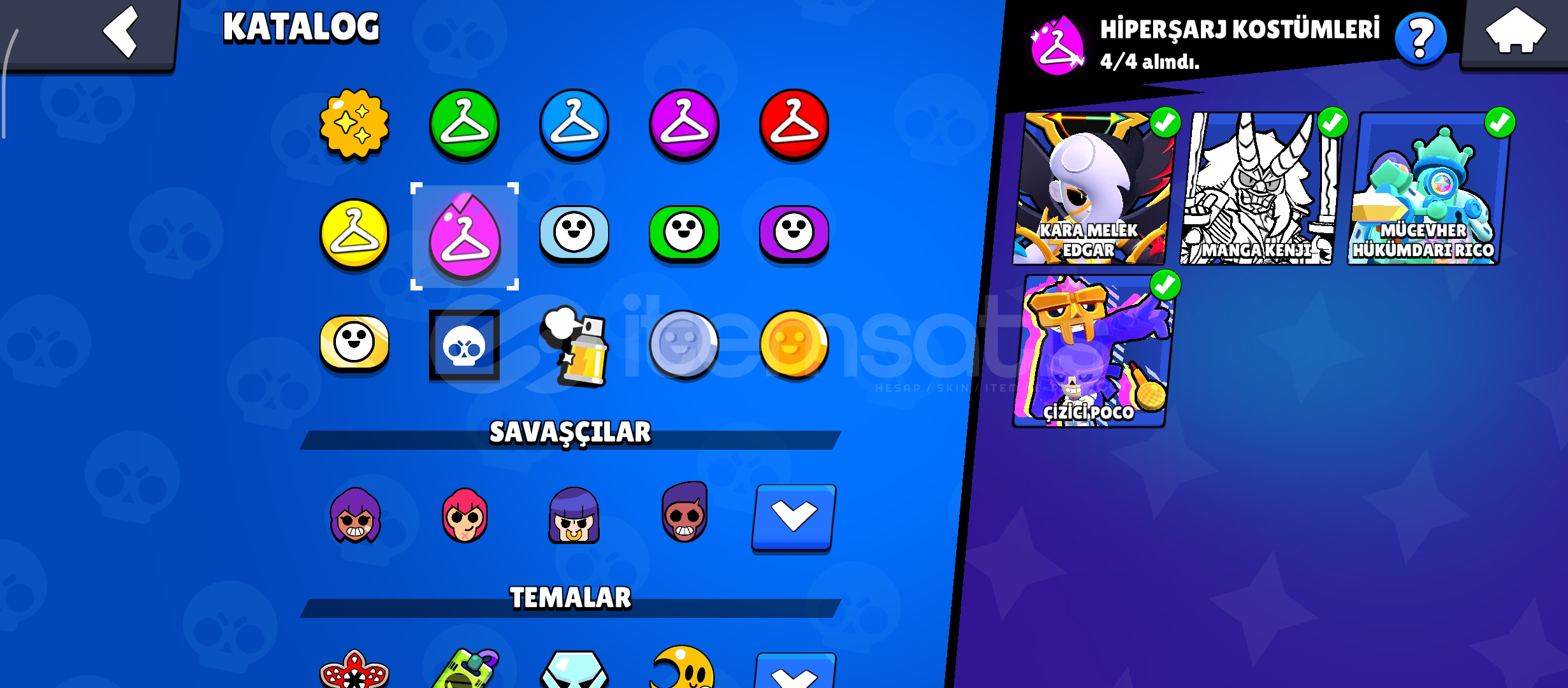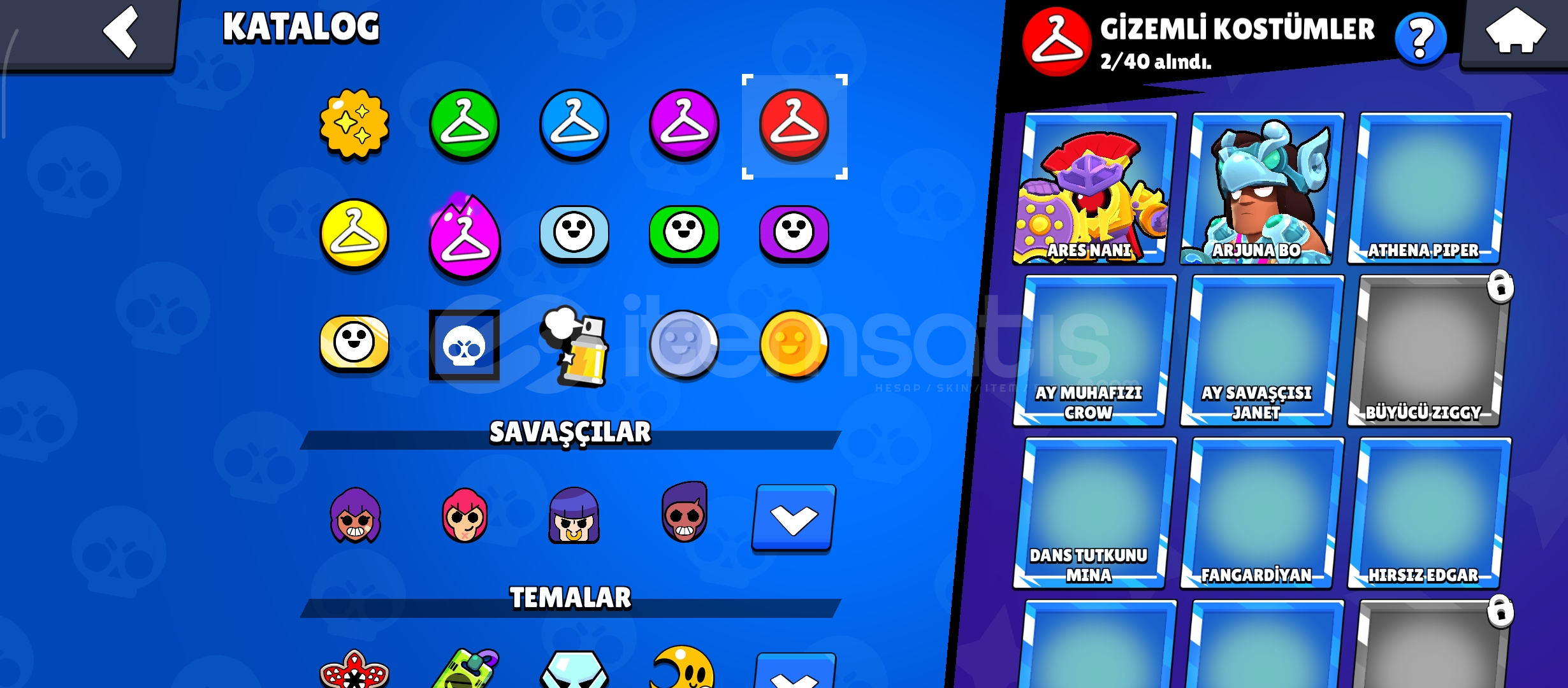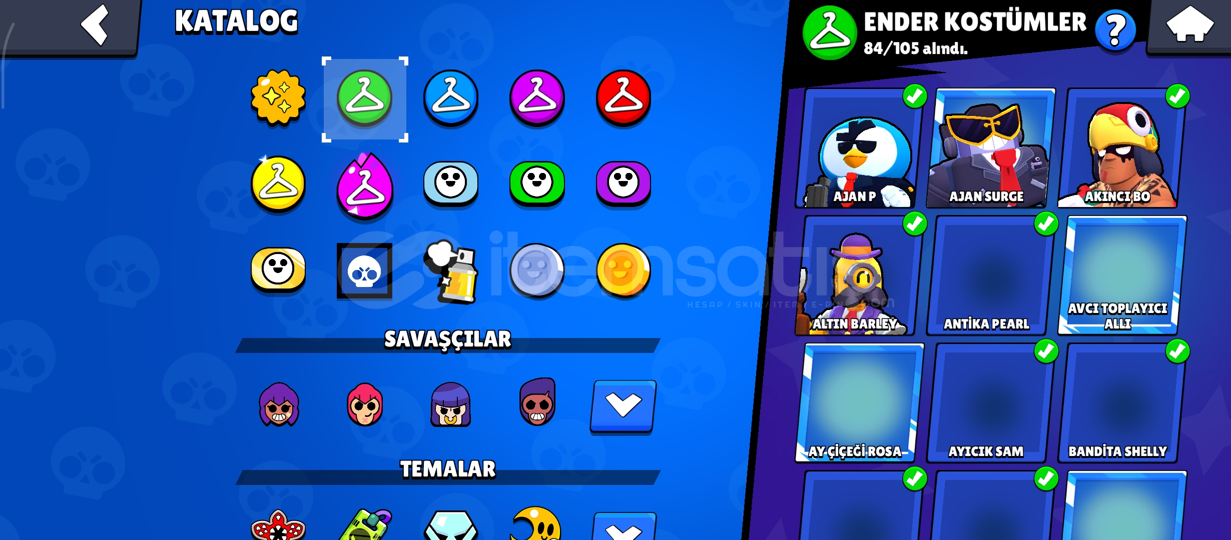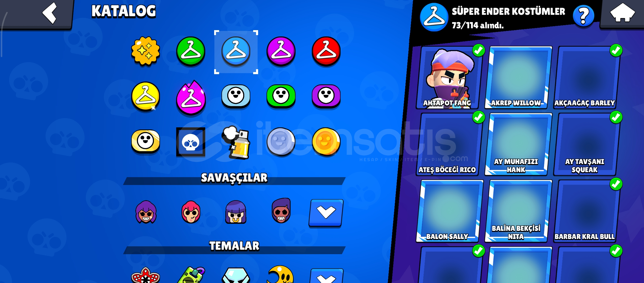 Hesap 77.799 kupa olup 12 ünvana sahiptir.Toplam 242 kostüm bulunmaktadır.Kostüm dağılımı şu şekildedir:84 Ender74 Süper Ender63 Destansı2 Gizemli7 Efsanevi4 Hiperşarjlı karakterAyrıca 5 Saf Gümüş ve 3 Saf Altın kostüm mevcuttur.Alan kişi kendi mail ve telefon numarasını bağlayabilir.Pazarlık payı vardır.Alan kişiye şimdiden hayırlı olsun! Hes...