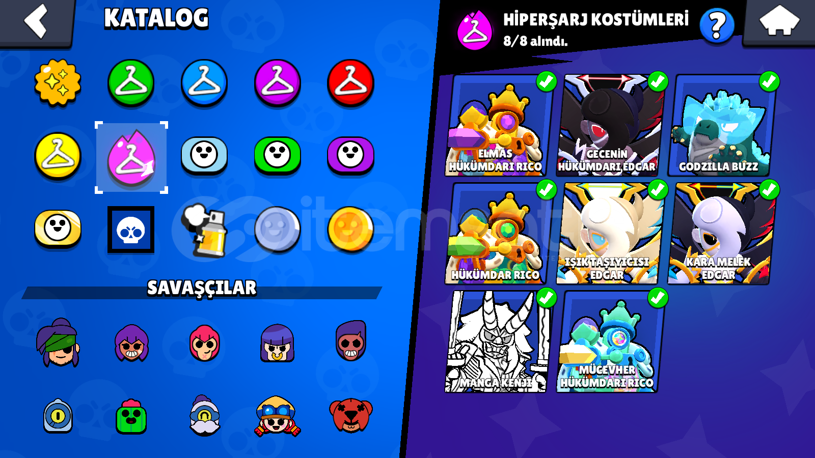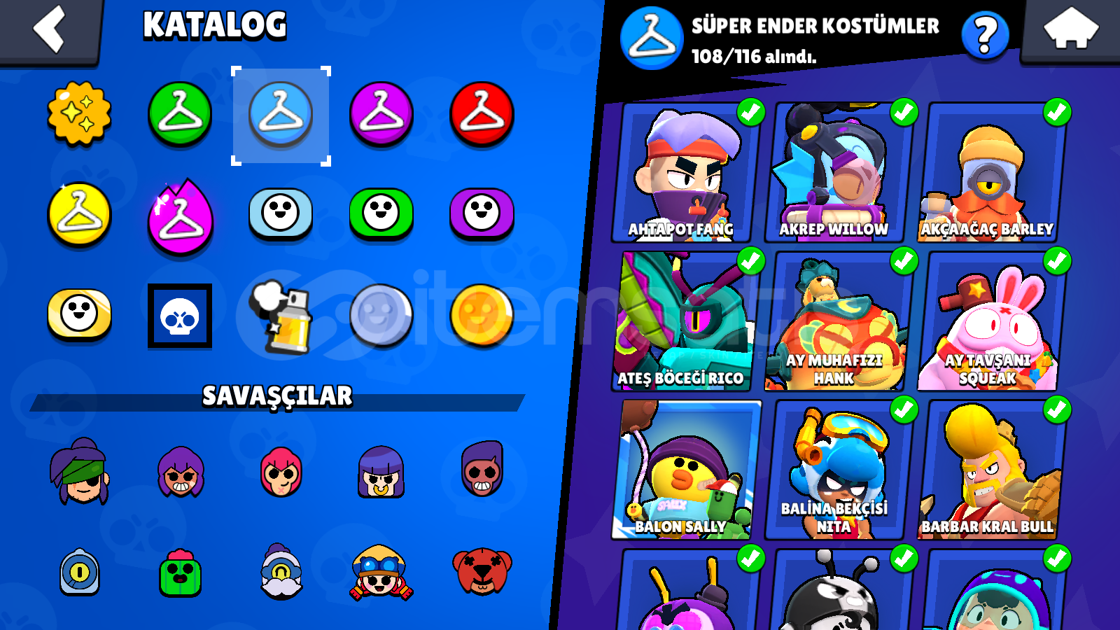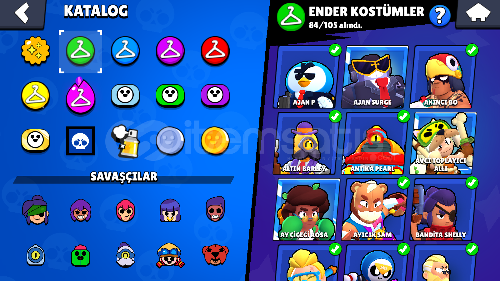 Sonraki karaktere 135 kredi kalmıştır. Hemen açabilirsiniz.Toplam 359 Kostüm Efsane Hesap37 Hiperşarjlı, Toplam 42 Maksimum Seviye84 Ender Skin108 Süper Ender Skin127 Destansı Skin19 Gizemli Skin13 Efsanevi Skin8 Hiperşarj SkinMail ve şifre olarak teslim edilecektir. Aldıktan sonra şifreyi değişiniz.Hesapta sizden başka kimse bulunmaz, bulunamaz. Otomatik teslimattır. Soru sormadan direkt alabilirsiniz.