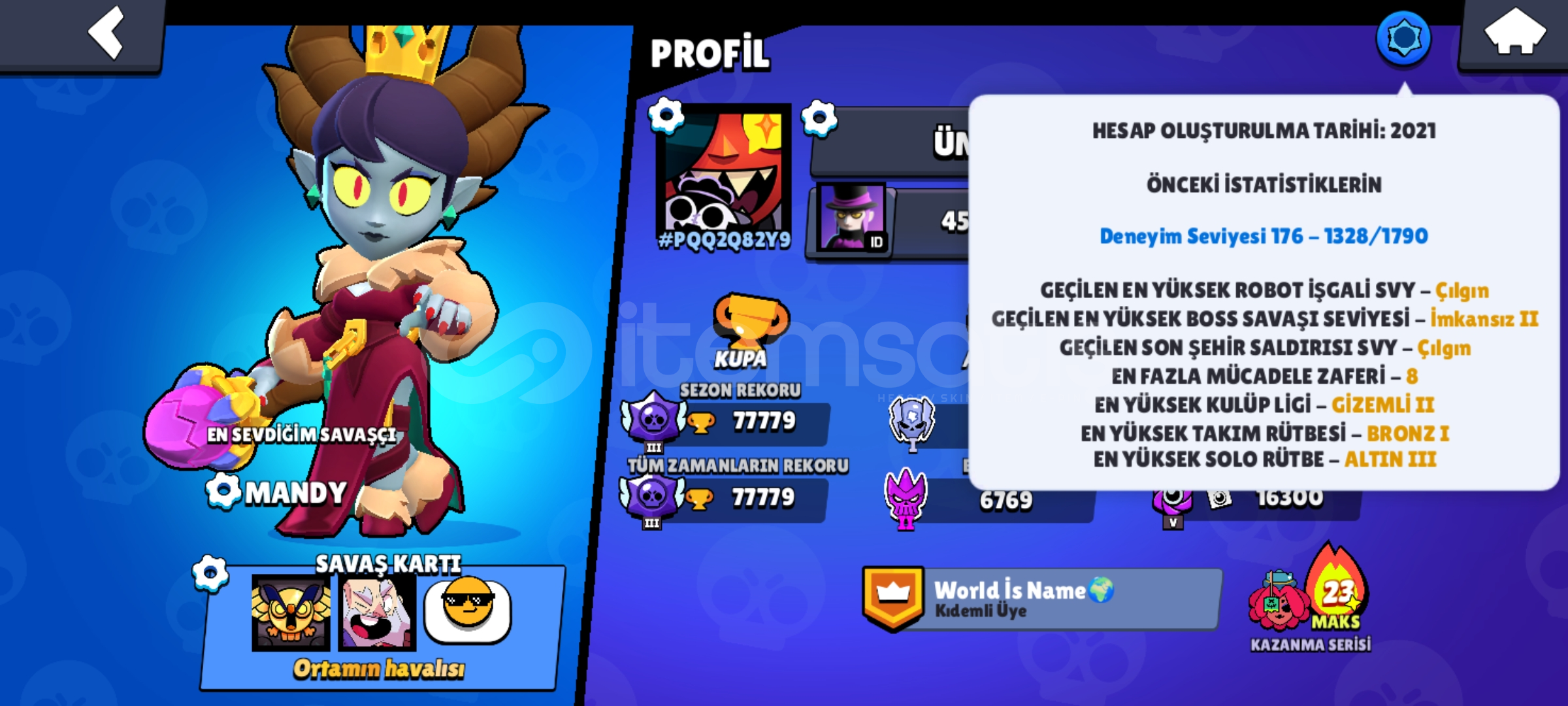Hesab çok iyi 78k 92 karakter var 3karekter eksik onuda oynayarak çıkarılır ben oyunu bıraktığım için düşük fiyata bırakacağım isim ücretsiz değişiliyor.