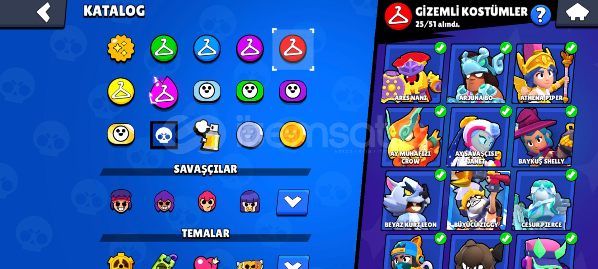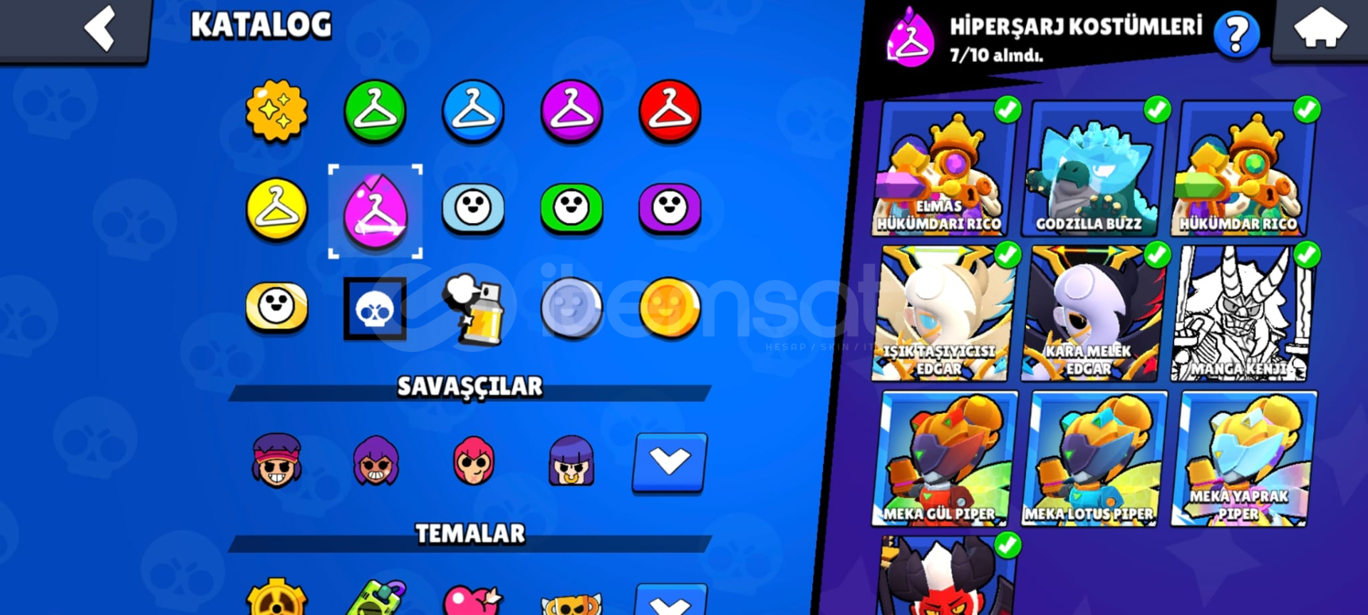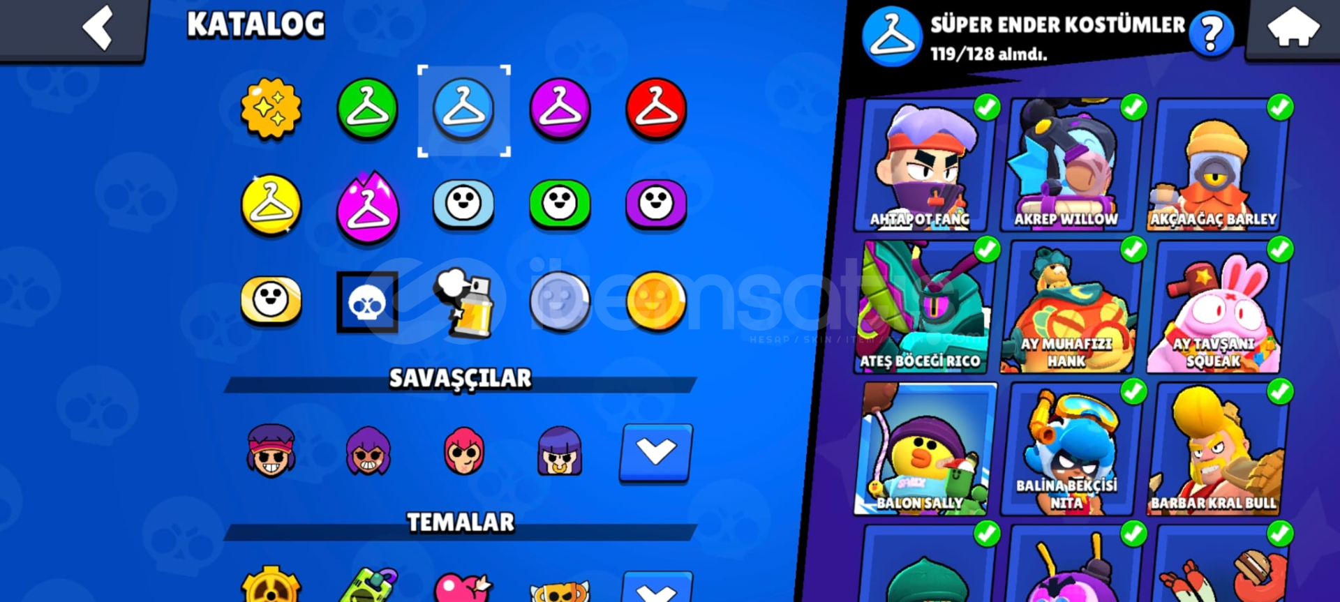 E-posta devir hesap koruması yok alana ilk satın alım faturası da verilecek böylece alan kişi hesap geri çekilir çalınır veya kiltlenir diye korkmasına gerek yok totalde 510+ skin var isim değişme ücreti 150 taş 🔹 En Yüksek Kupa:100.378🔹 Güncel Kupa:96892🔹 3v3:18485🔹 Karakter Sayısı:98🔹 11 Seviye Sayısı:67🔹 Hiperşarj Sayısı:62...