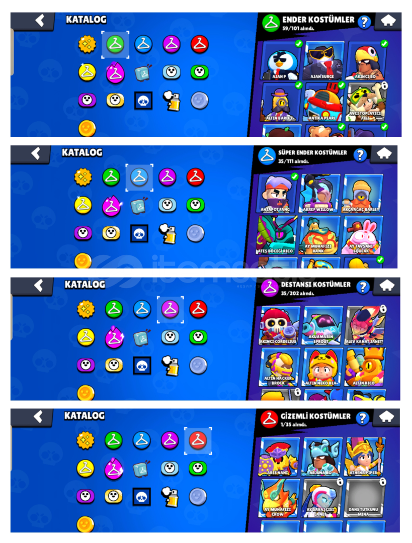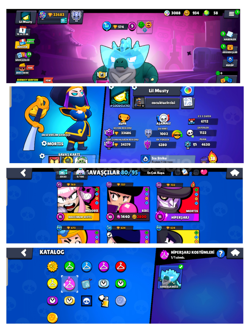 50 Ender34 Süper Ender 34 Destansı1 Gizemli1 Hiperşarj skini bulunmaktadır.2 kere brawl pass + satın alınmıştır80 karaktere sahipGelişmek isteyenler için karakteri fazla kupası az hesapYanında 28 level hayday hesabı ile beraber gelecektirSatın almadan önce detaylı bilgi için dm...