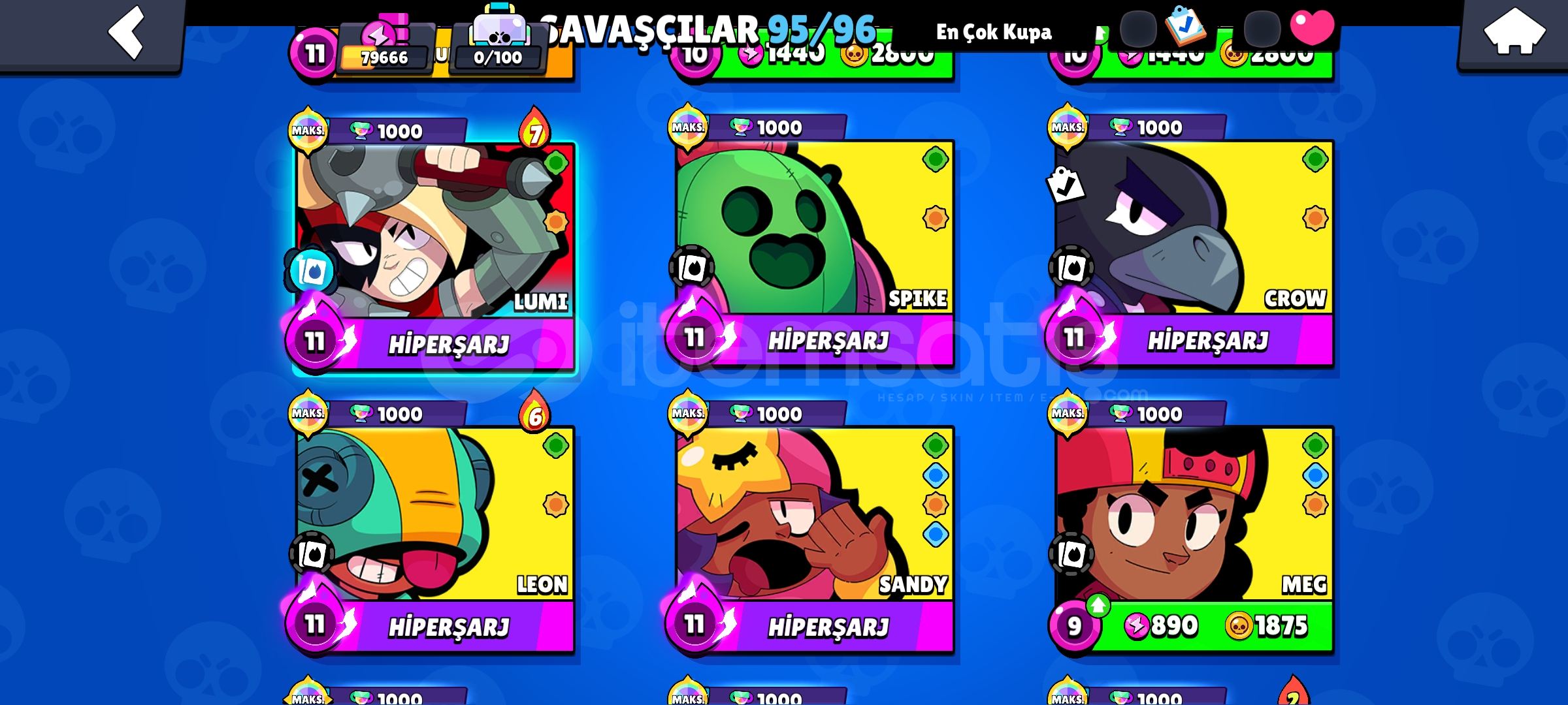 Hesabım 80000 kupa 95 karakter var 300 kostüm bulunmakta ölü fiyata bırakıyorum oyunu bırakmaya karar verdim. temiz hesapdır daha önce e posta değişimi fln olmadı kendi hesabım 2019 hesabıdır alırsanız memnun kalırsınız umarım boost fln herhangi birşey yapılmadı hesapta