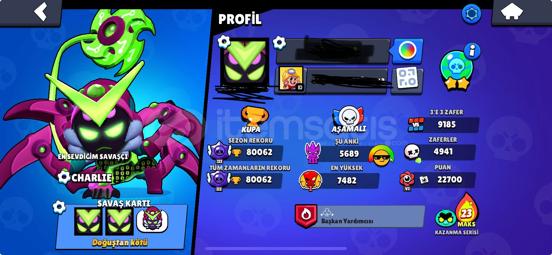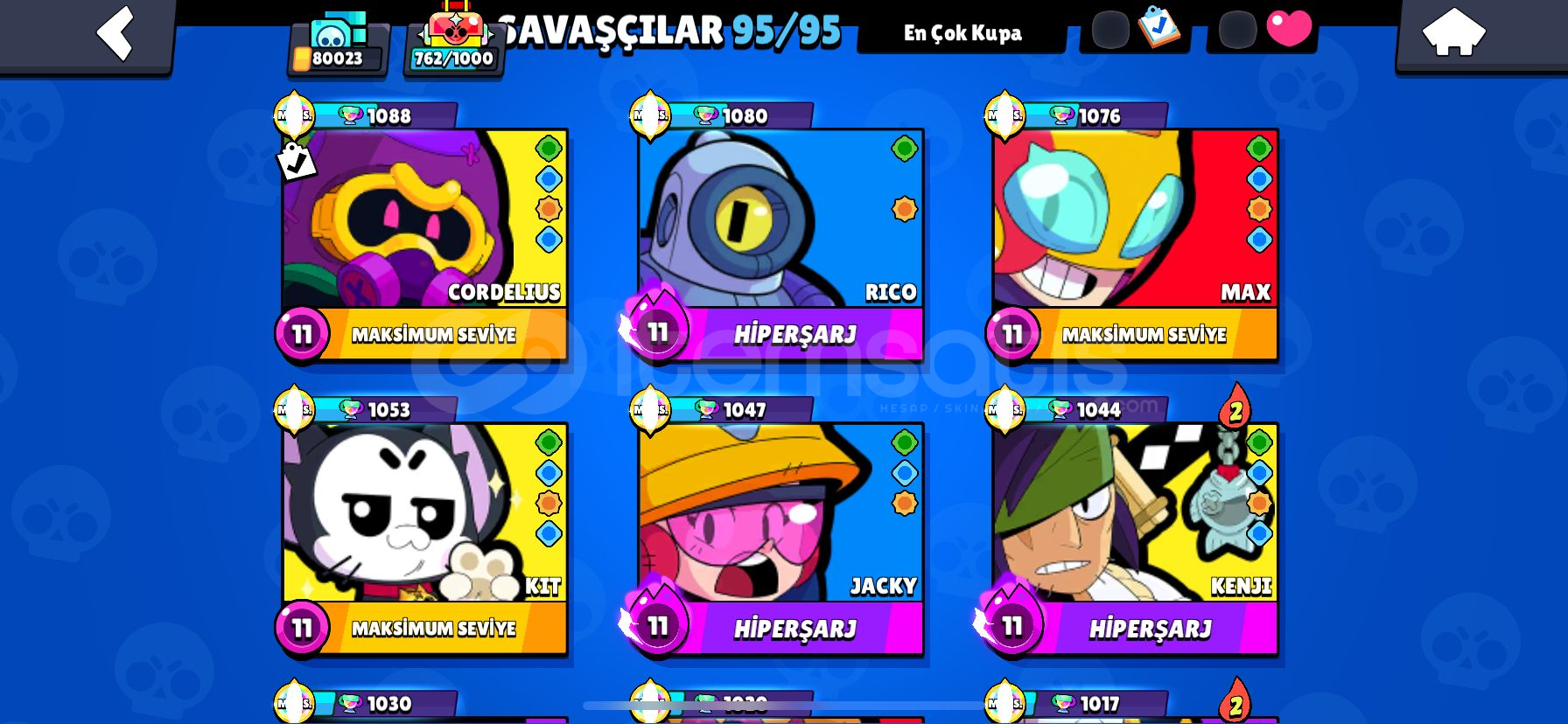 AKTİF 80K KUPA MEVCUT!!-200+skin mevcut!6 Efsanevi skin!Hesap levelleri aşırı iyiNadir skinler var örnek / samuray ruff vbHesap 2019 kurulumlu eski bir hesaptır!Karakter çoğunluğu 9-10 levelden yüksek çok büyük bölümü 11 levellerden oluşuyorŞöhret açık Tüm karakterler açıkBRAWL PASS AÇIK-!!!!!!!!hesap şahsi hesabım sıkıntı çık...