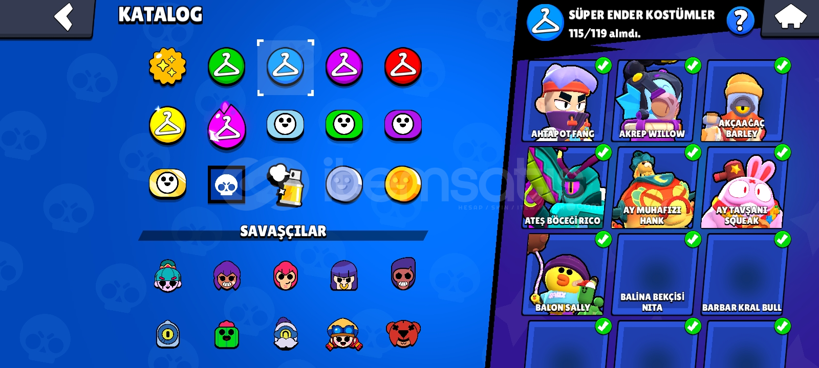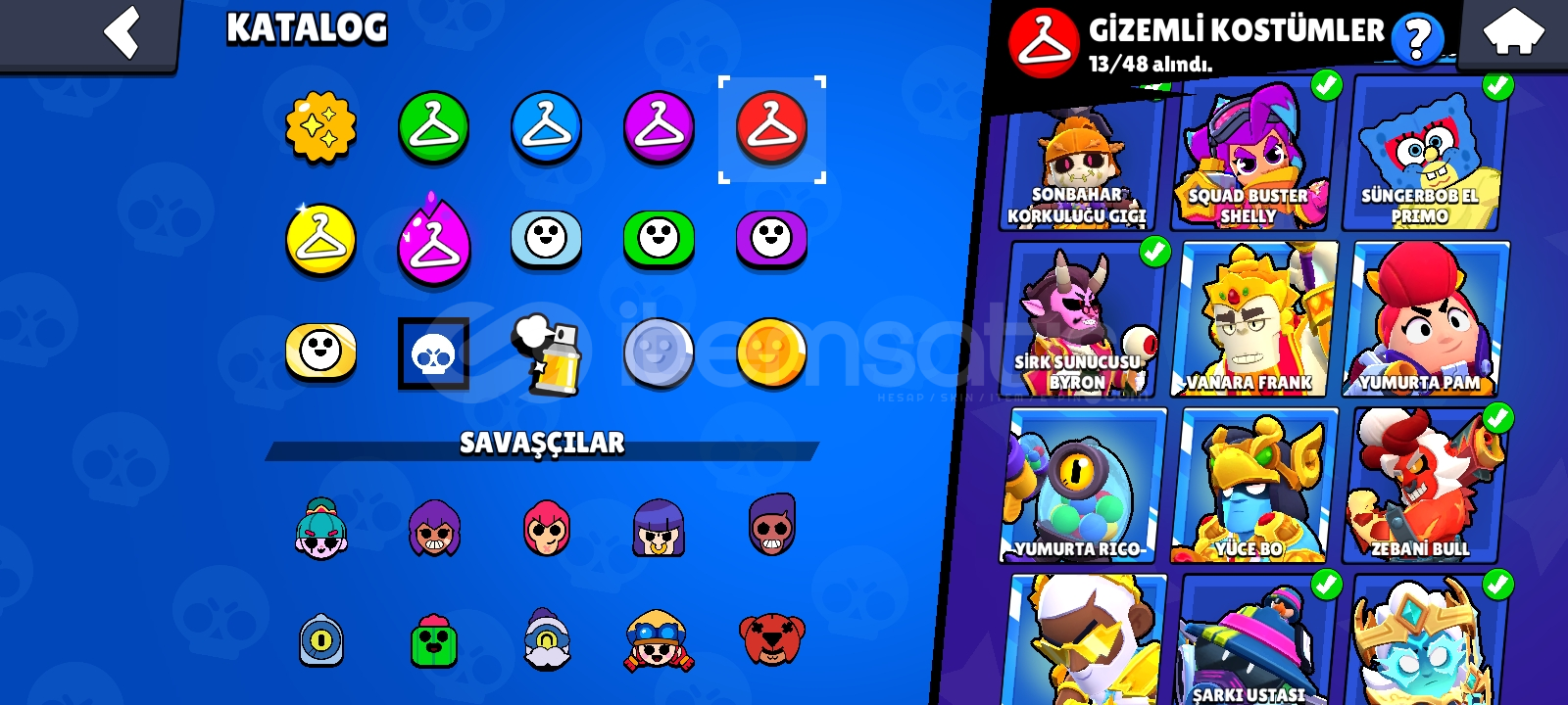 51 hipersarj 60+ 11seviye karakter. Karakterler full 350+ kostüm 1000+pinHesaba 6 kere paralı brawlpass açılmıştır 5i plus 1i düz pass önceki sezon paslerinden 5kere açılmıştır hesap dolular dokusudur oyunu bırakacağım için satılıktır alan kişiye manuel tesliamt edilecektir maili degisicektir pazarlık vardır hesap 2020 deneyim seviye 156 Her karakterde en az 4 tane skin v...