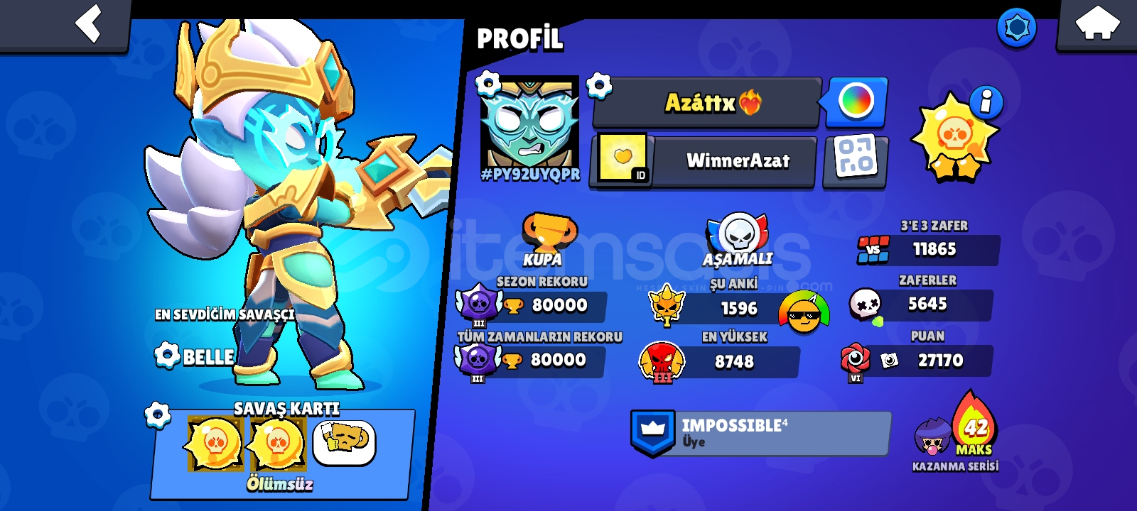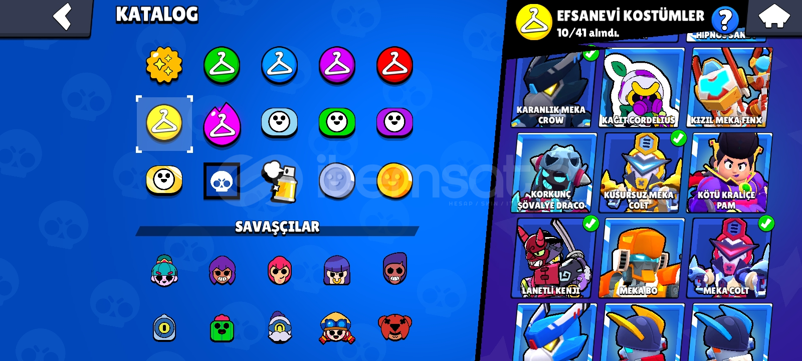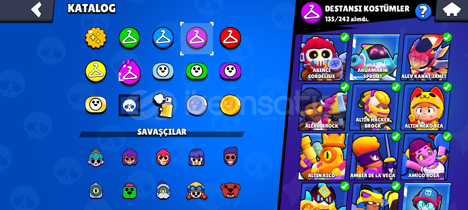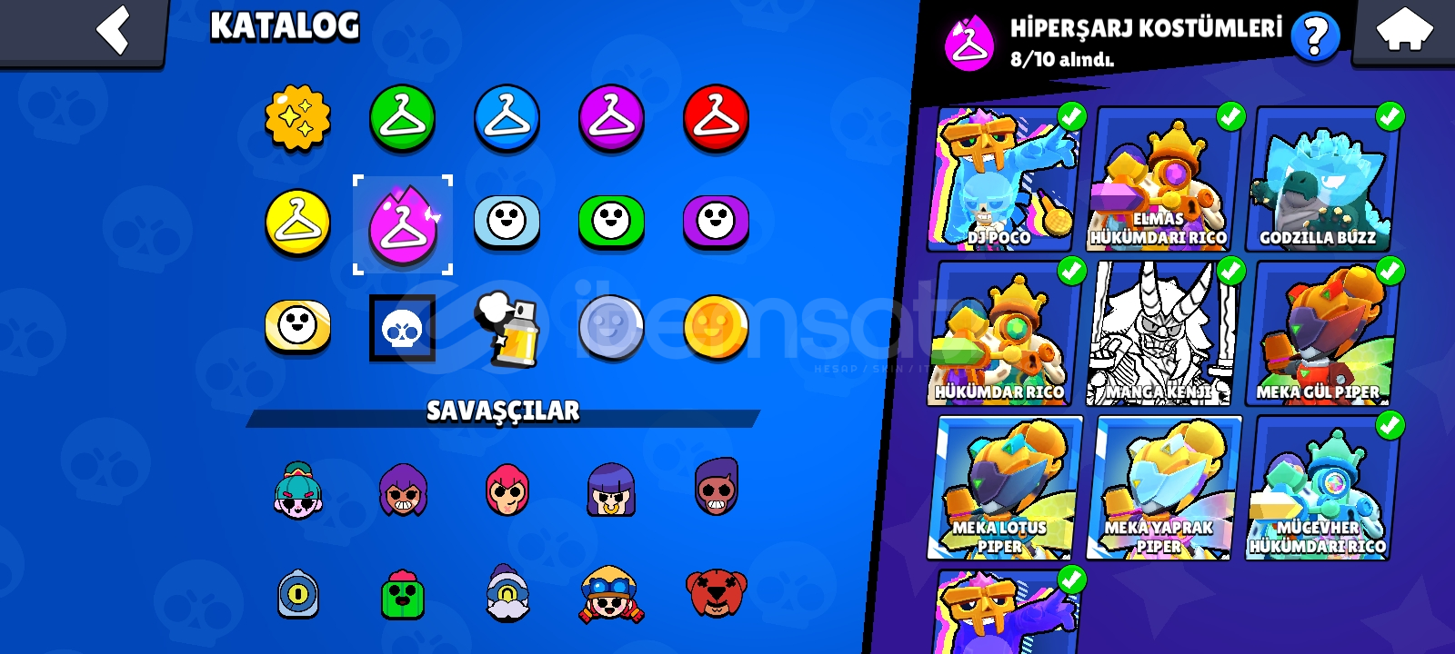 51 hipersarj 60+ 11seviye karakter. Karakterler full 350+ kostüm 1000+pinHesaba 6 kere paralı brawlpass açılmıştı...