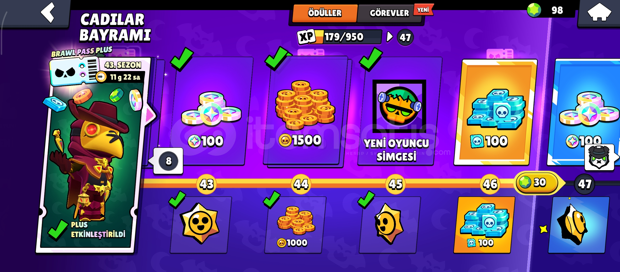 50 tane lvl 11 karakter 42 tane hiper şarj 10 dan fazla brawl pass+ acılmıs nerdeyse tumumükemmel fiyat yeni brawl pass+ da ac...