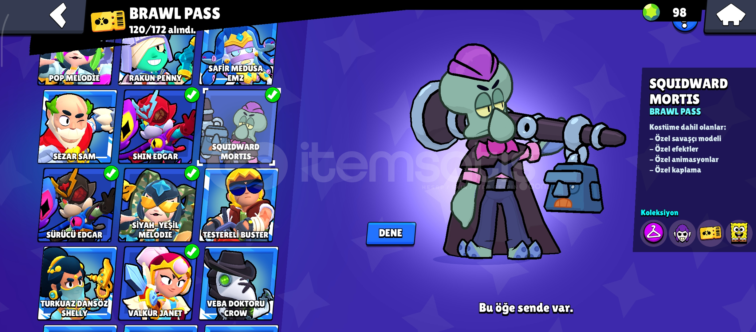 mükemmel fiyat yeni brawl pass+ da acık.Birsürü nadir kostum var tüm karakterler vardır.