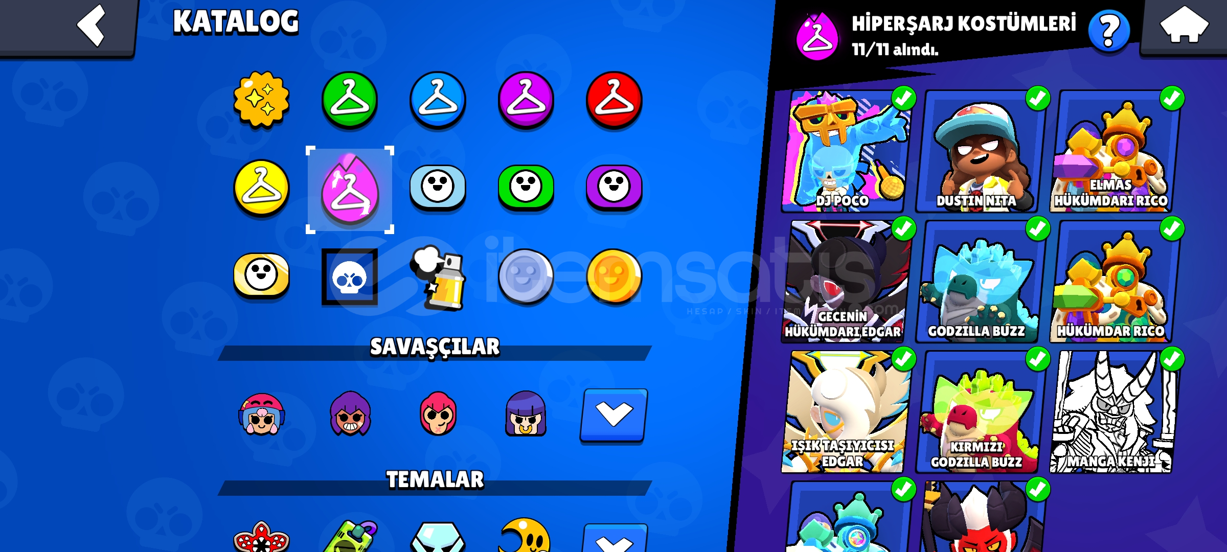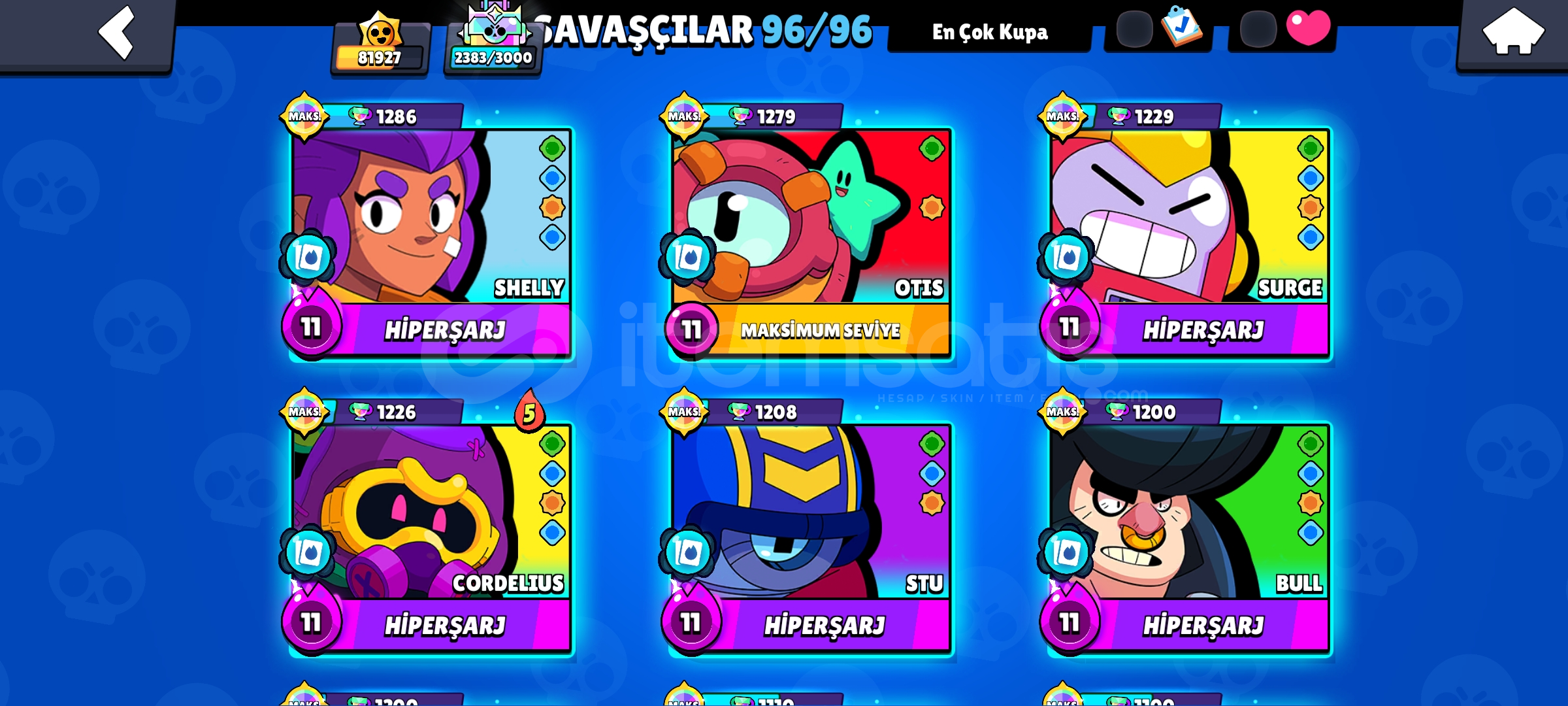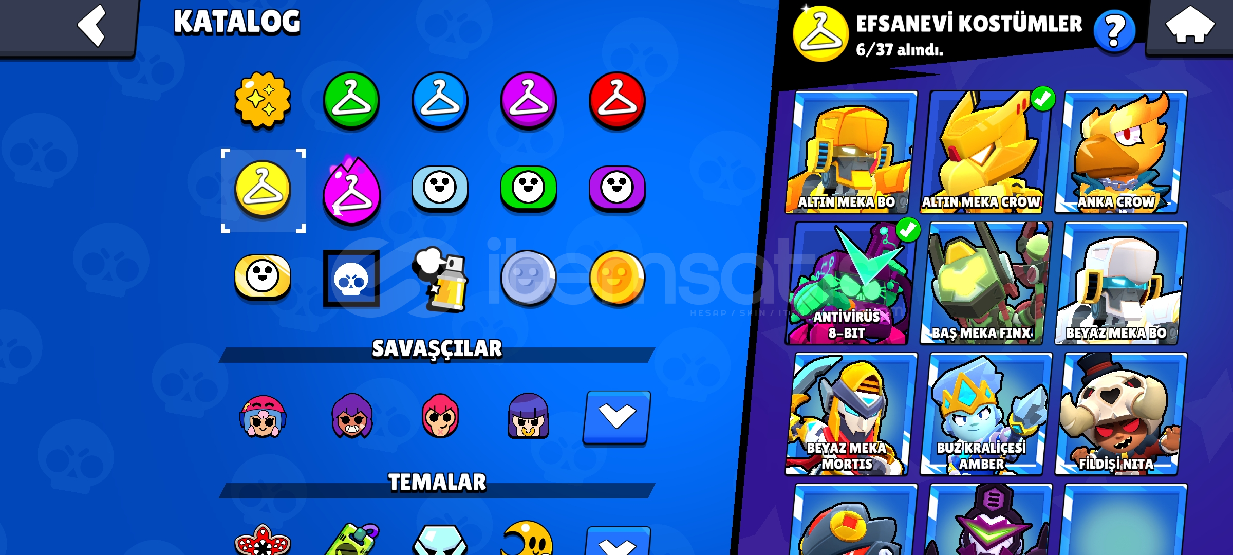 Hesapta Tam Tamına 320 Kostüm vardırKostümlerde Nadir Olanlarda Var Ve Çoğunlukla Destansı Kostümler vardır82.000 Kupa Ve Kasılacak Birsürü Düşük Kupa Karakterler Vardır Onlarda Kasılınca Rahat 85.000 Kupaya GelebilirsinizHesabın İsmi 90 Elmasa DeğiştirilebilirNeredeyse Her Karakterde Kostüm VardırHesap 2020 KurulumludurHesapta 25 Karakterden Fazla 1.000 Kupa Vardır Kara...