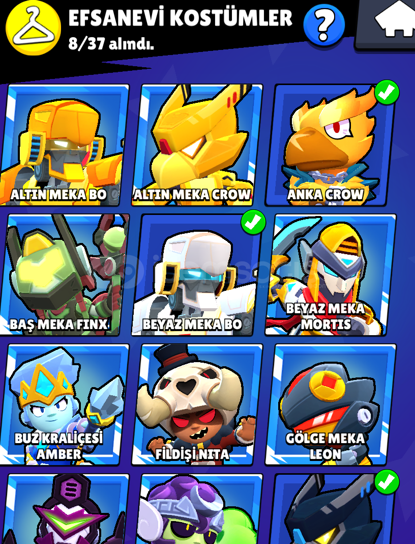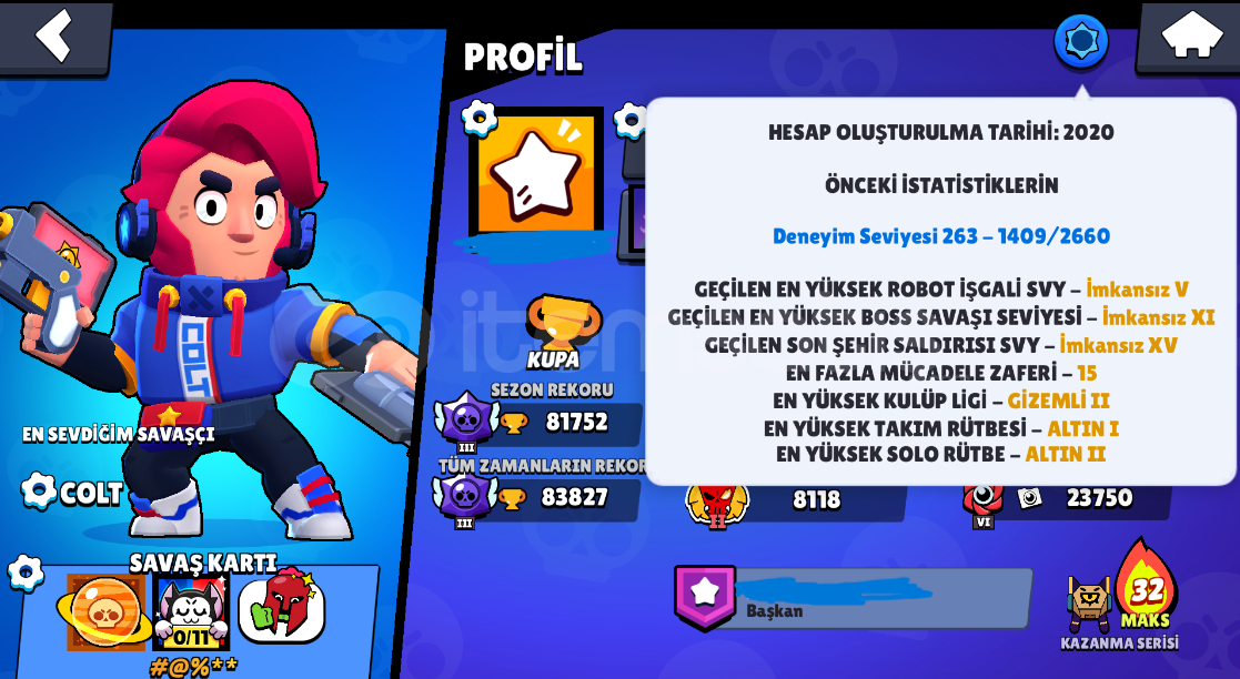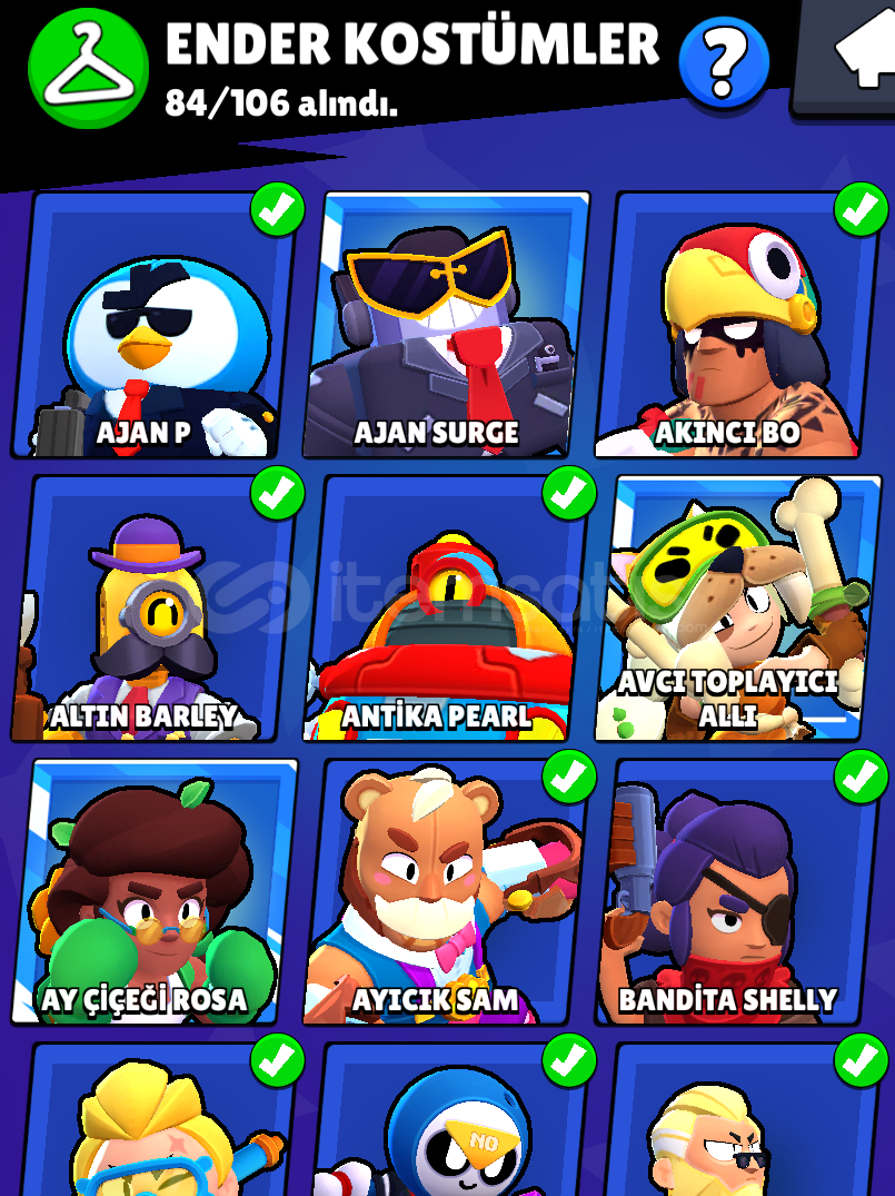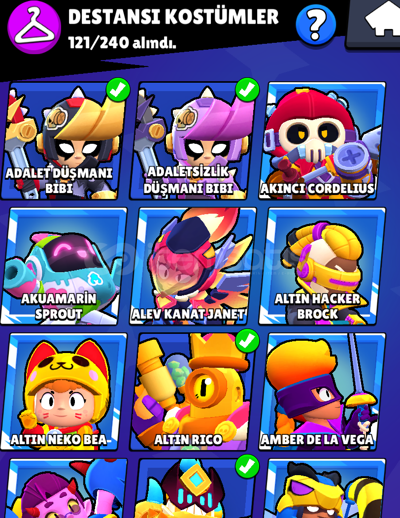 Hesap açılış yılı 2020Ender kostum: 84Super ender kostüm: 107Destansı kostüm: 121Gizemli kostüm: 12Efsanevi kostüm: 8Hiperşarj kostüm: 4 ------------------Hesaptaki değerli kostümler:Mücadeleci coltCadı shellyKorsan coltSaf altın coltMeka coltHyperıon colt (3 renk birlikte 1000 tl pass acıldı)Super ranger brockPsg mikeFlamengo mıkeMega omega kutu darylBeyaz meka boSokak nınjas...