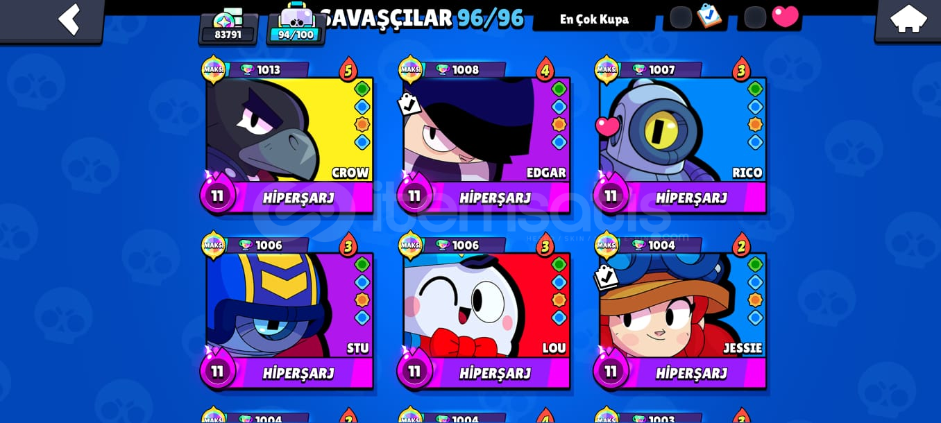 350 skin üetü 96 karskter nadit skinler vesaire var hesap full karakter mğkrmr böyle hesap yok tr de tek 84k civarında kupası ülk gelen kapar