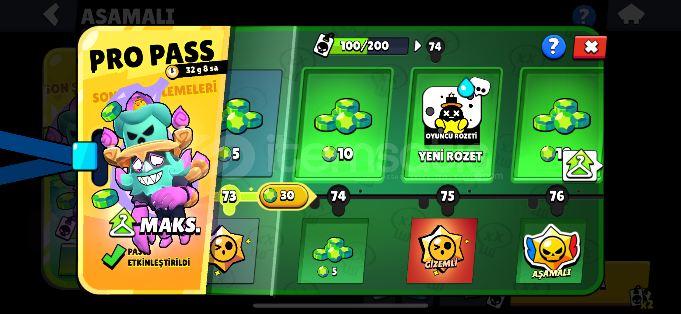 brawl pas plus açıkpro pas açık10 bin altın 25 bin mücevher 50 elmas96 karakter 42 tane 1 k karakter aşamal...