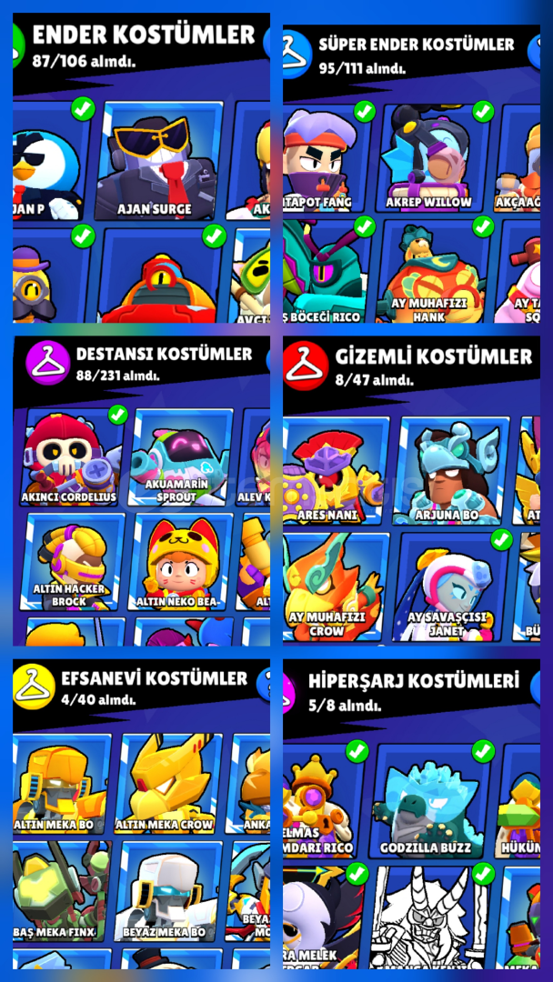 84 BİN KUPA⚡HESAP 97/97 KARAKTER BULUNUYOR⚡85 MAX KARAKTER 55 HİPERŞARJ KARAKTER VARDIR⚡GÜNEŞ ŞÖHRETİ 2 HESAPTIR⚡270'TEN FAZLA KOSTÜM VAR 4 ÖZEL ÜNVAN