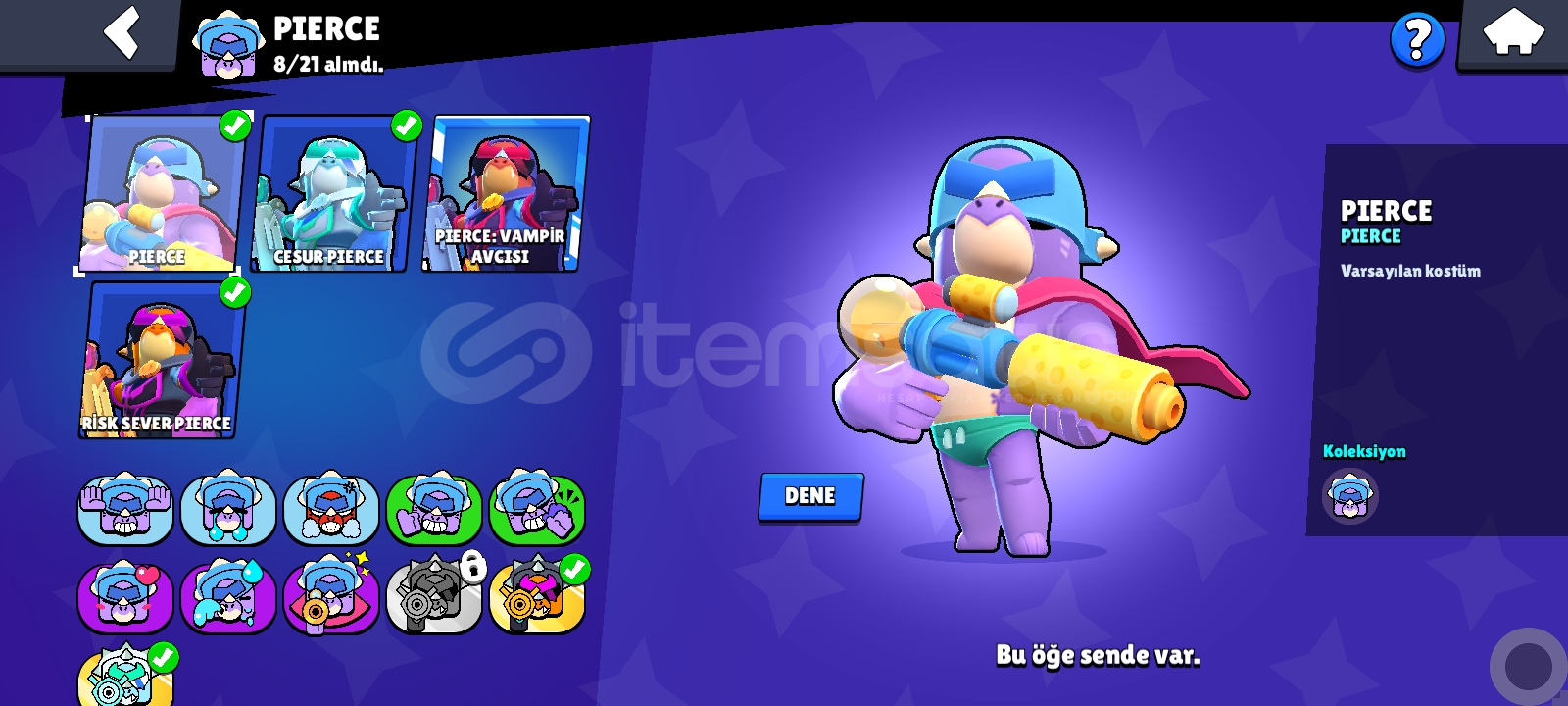 PİERCE KARAKTERİ AÇIK VE 2 TANE GİZEMLİ KOSTÜMÜ VARDIR