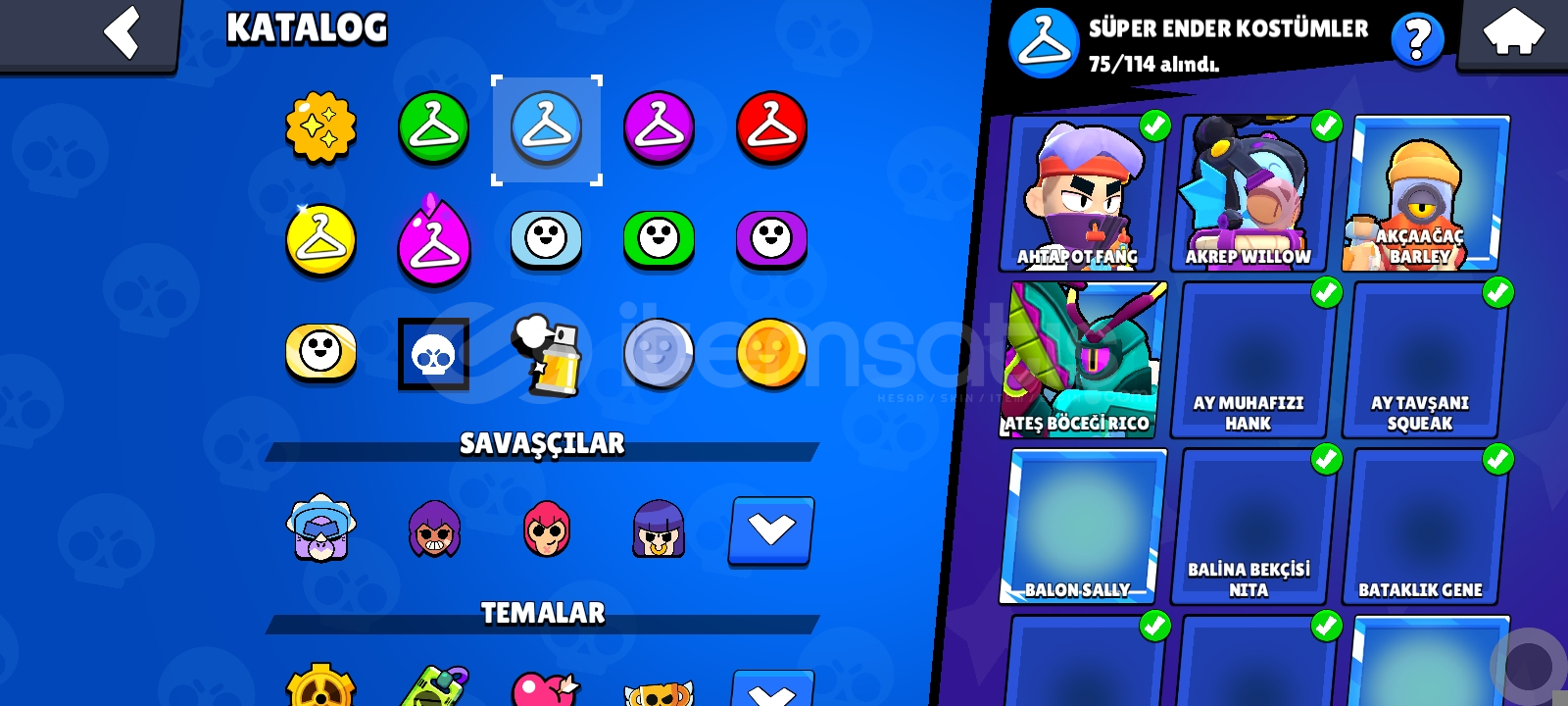 Öncelikle selamlar oyunu bırakıcağım için hesabı satılıyorumHesap aktif olarak 83400 kupadır23 tane 11 seviye23 tane 10 seviye49 tane 9 seviye3 tane 8 seviye olmak üzere 98 karakterin hepsi vardırHesapta ayrıca 18 tane aktif hiperşarjVe 53 tane max kademe(1000 kupa)Karakter vardırPİERCE KARAKTERİ AÇIK VE 2 TANE GİZEMLİ KOSTÜMÜ VARDIRHesapta 340+ kostüm vardır-88 Ender-75 S....