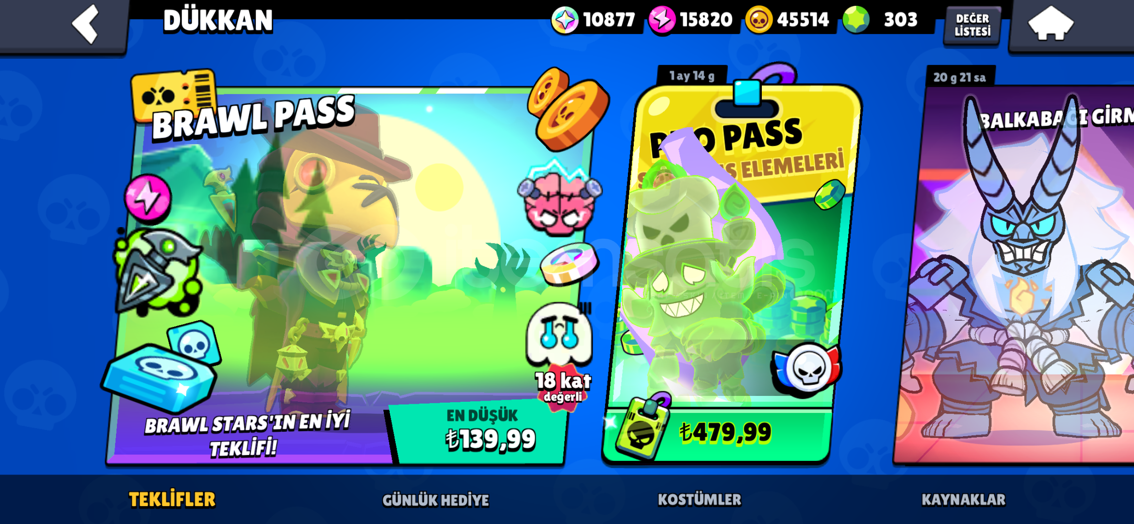 8+brawl pass açılmış1sezon pro pass açılmış10 efsanevi kostüm2hiper şarj kostüm5 gizemli kostüm126 destansı kostüm79süper ender kostüm54ender kostümfazlasıyla altın ve güç puanı 300 elmas52 karakter 1000 kupa üstünde