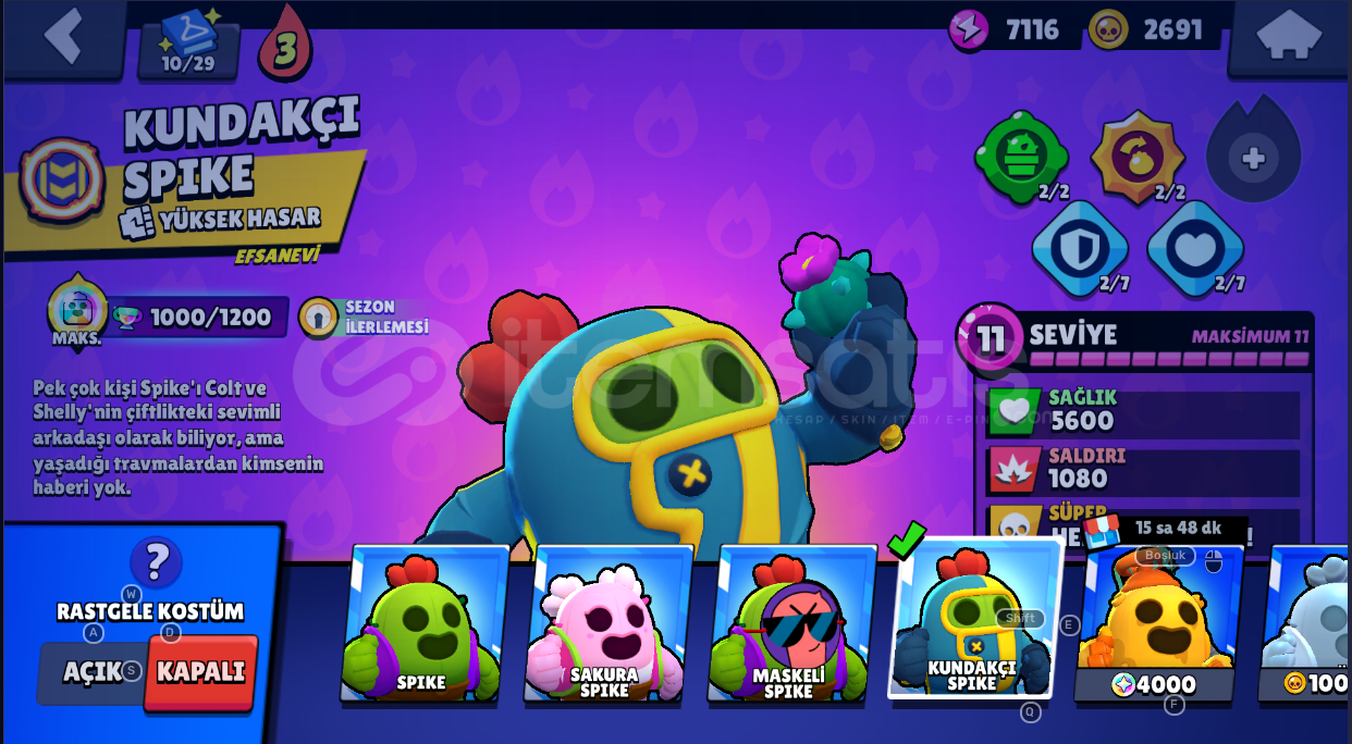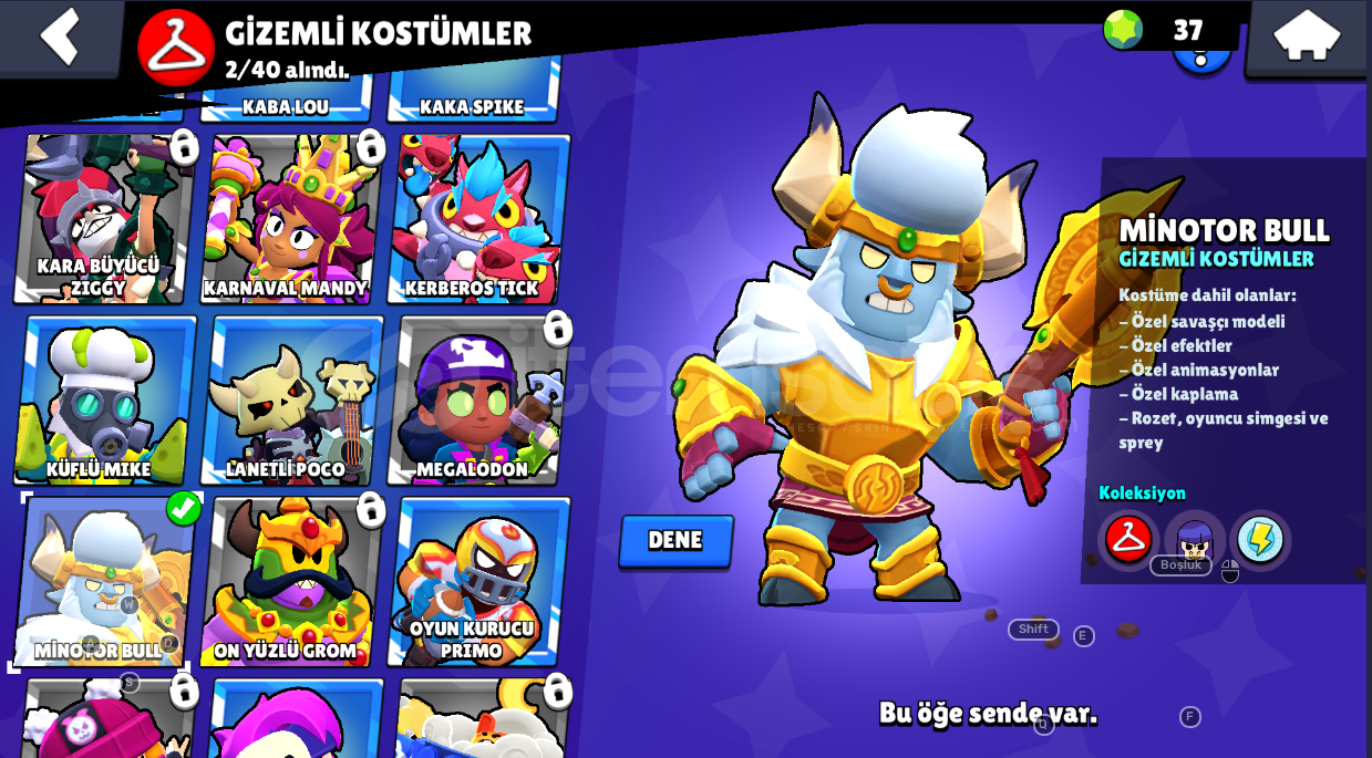 Hesap Detayları;-Ender Kostüm sayısı: 15-Süper Ender Kostüm Sayısı: 21 -Destansı Kostüm Sayısı: 14-Gizemli Kostüm sayısı: 2-Efsanevi Kostüm Sayısı: 1-Hiper Şarj Kostüm Sayısı: 1-----------------------------------