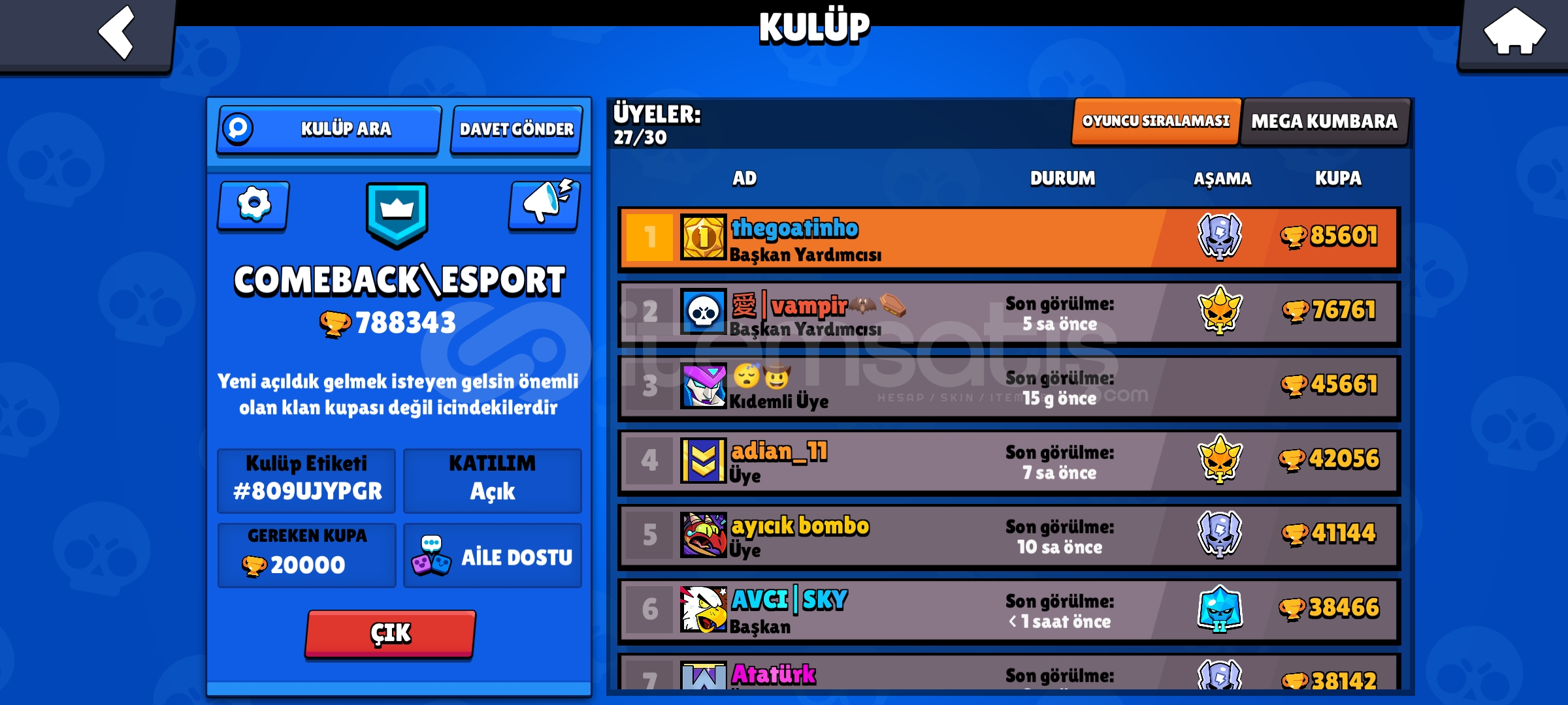 -63 TANE MAX TİER YANİ 1000 KUPA KARAKTER 63 TANE