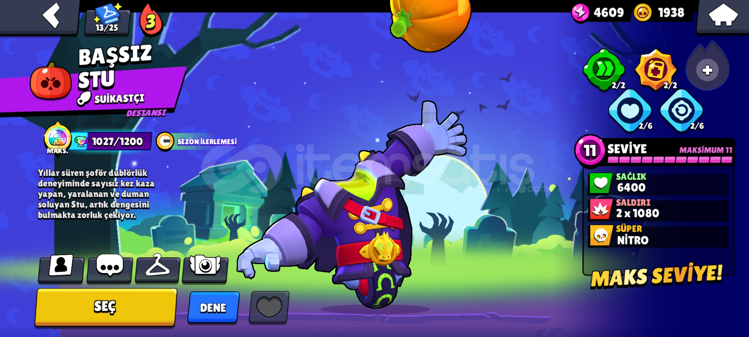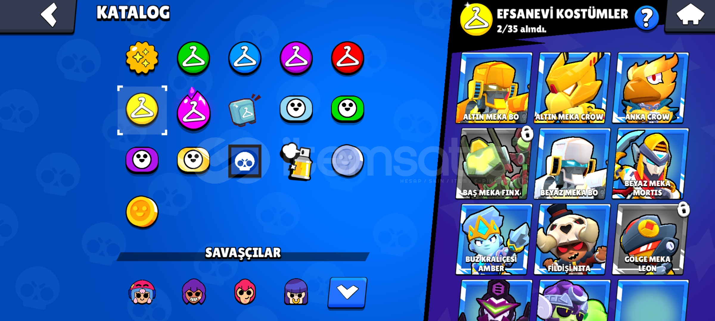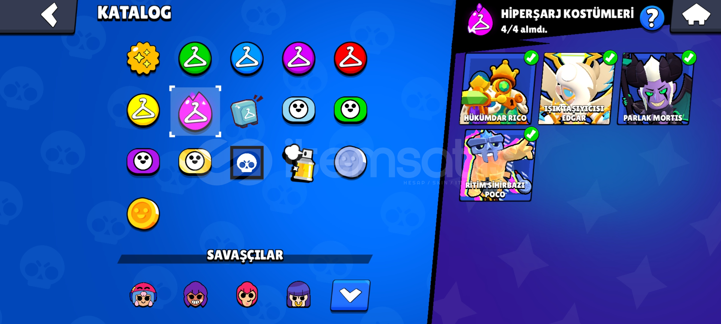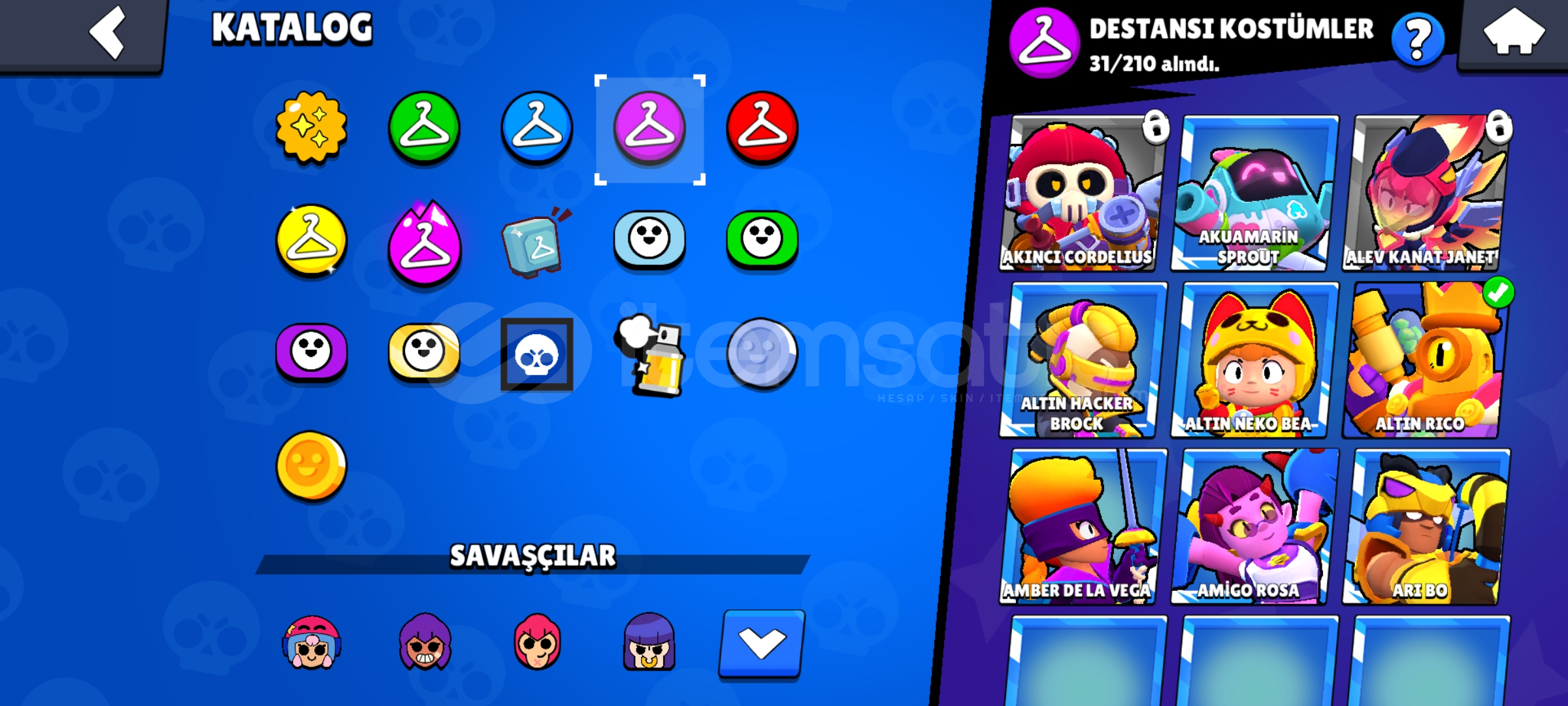 KOSTÜM SAYILARIEnder:49S.Ender:50Destansı:31Gizemli:5Efsanevi:2Hiperşarj Kostümü:4Hesapta 2 brawlpass açılmışBaşsız Stu,Baykuş Shelly ve Hiperşarj kostumleri gibi nadir ve güzel skinler vardırMail verilecektirKüçük bir indirim olur detaylı bilgi için DMSohbet bani var 2 haftalikAlmadan önce mesaj atın