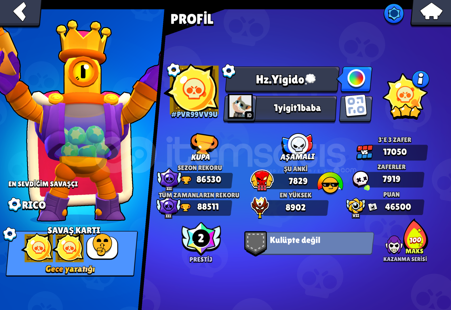 Hesap 88k Master var , eski sistemde 35 rank var , 2 adet prestij var Hesap kişisel olduğundan hiçbir sorun yaşamayacaksiniz emen olabilirsiniz ender 97 Süper ende 98 destansı 180Efsanevi 22 Gizemli 16Hiperşarz 82 tane master atılmış bu sezon da 7800 siz hesabı alana kadar master atmış olurumCR 12000 4 elit kart var 8 max kart MERAK ETTİKLERİNİZİ DM DEN SORABİLİRSİNİZHESABA BİRŞE...