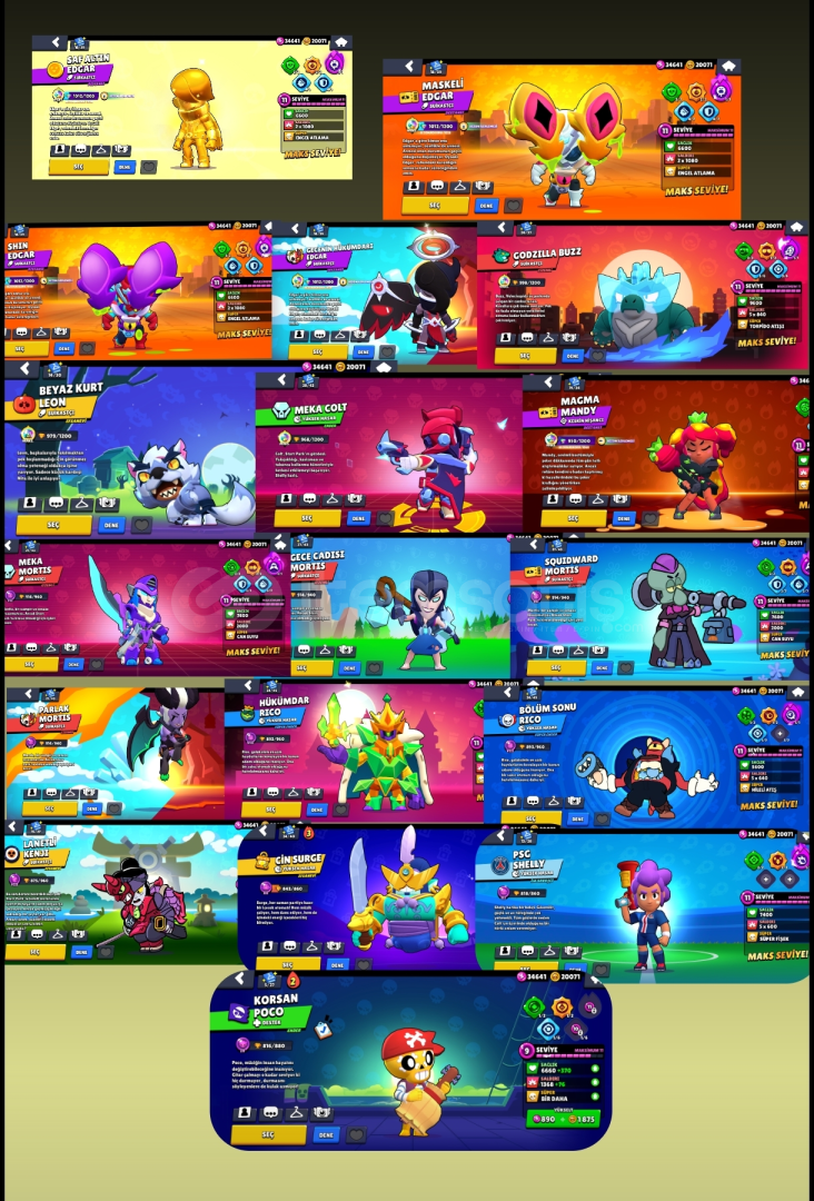 Merhaba arkadaşlar hesabınızın özellikleri şu şekildeResimlere eklediğim kostümler yalnızca çok azı çok daha fazla kostüm var& 53455 kupa&12500 mücevher &24000 altın 35 k güç puanı&7 efsanevi kostüm9 ünvan&Meka kostümlerin çoğu var sadece Leon ve edgar yok&50 destansı kostüm &80ender kostüm &5 gizemli kostüm &80 Süper En...