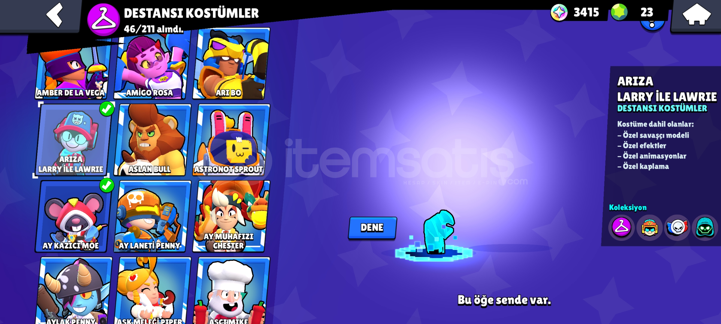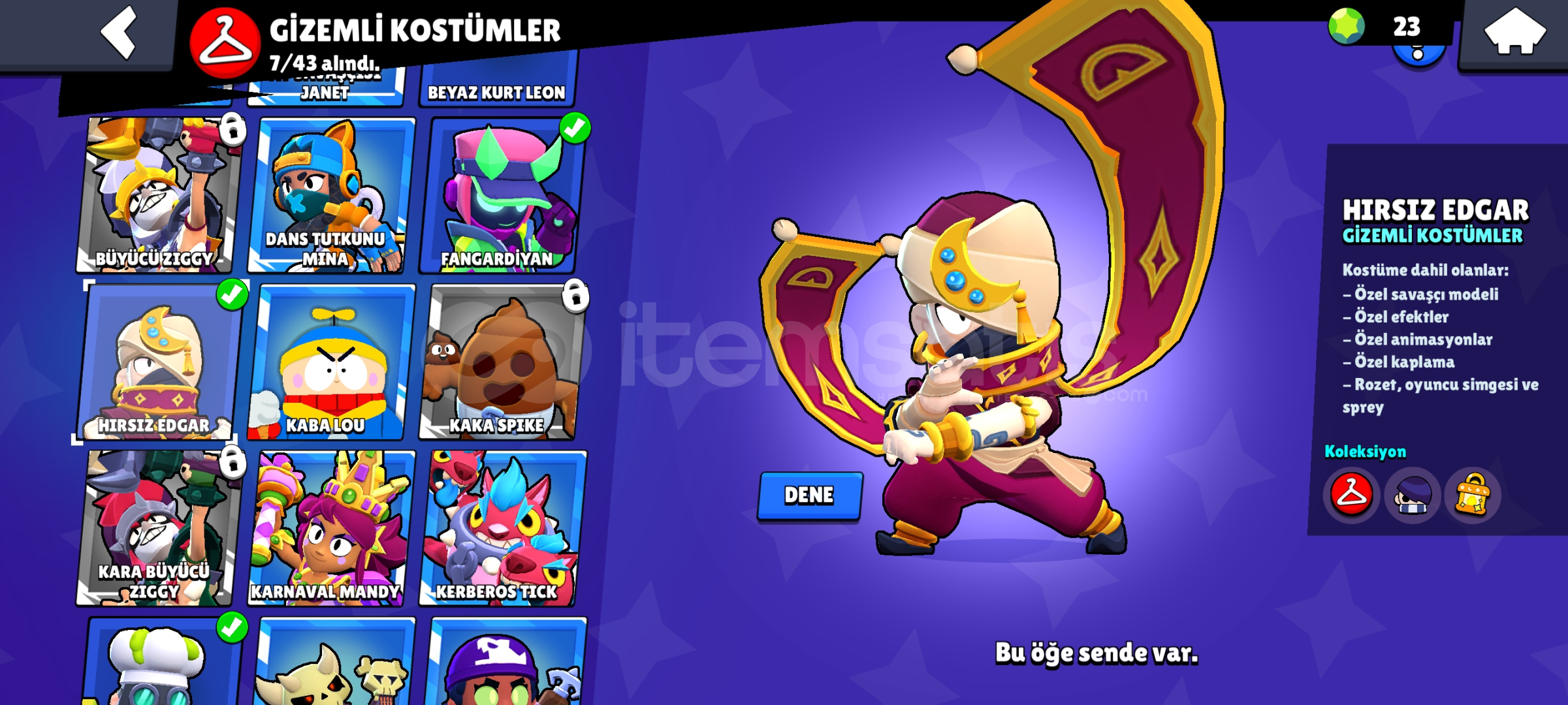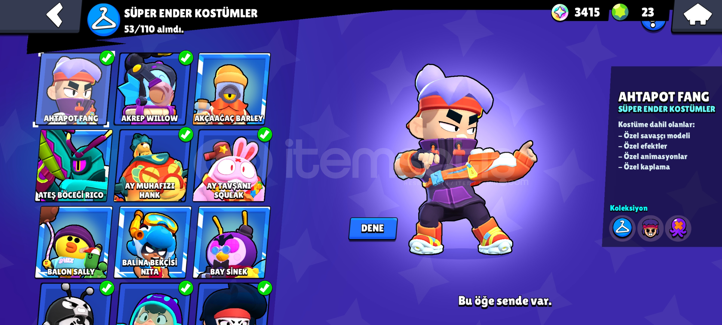 ✨90KARAKTER ✨37699 k✨ ✨EFSANEVİ KOSTÜM 7 TANE✨ ✨GİZEMLİ KOSTÜM 7TANE✨ ✨DESTANSI KOSTÜMLER 46 TANE✨ ✨Super Ender kostüm 53tane✨ ✨Ender kostüm 66 tane✨ ✨EPSOTA ŞİFREYLE TESLİM OTOMATİK ✨✨TESLİMAT✨ 19 Tane hiper şarj 13 tane bin kupa ✨Hesap otomatik teslimat aldınız ZAMAN ✨gmail bilgileri...