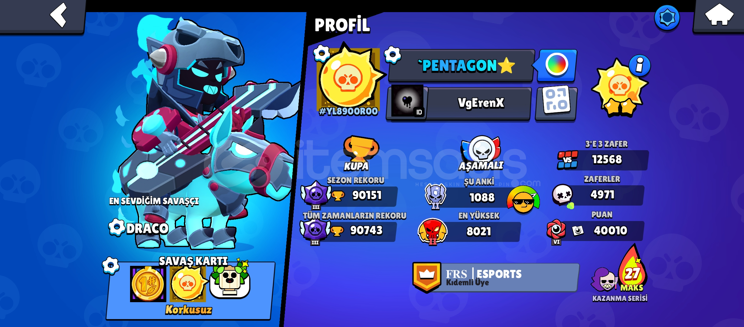 ⭐ Hesap oluşturma tarihi 2021 Kostümler:90 Ender,Süper Ender 109,Destansı 115,Gizemli 10, Efsanesi 13, HiperŞarz 7 ade...