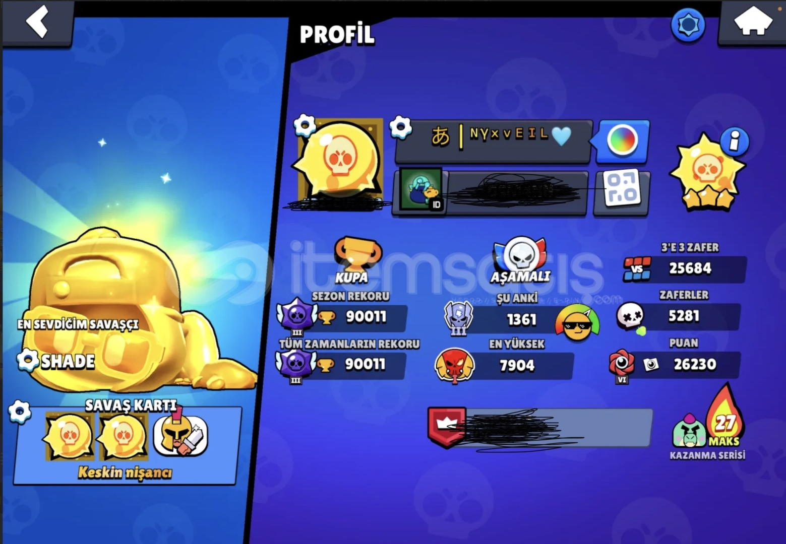 Hesap ile ilgili genel bilgiler;Hesap güncel olarak 90100 kupaya sahiptir hesaptaki en düşük seviyeli karakter 11seviyedir. tüm karakterler açıktır hesapta bu sezonun bpsi açıktır eski sezon aşamalısı efsanevi yeni sezon aşamalısı efsanevi hesapta 15 ünvan vardır hesap güneş 3 şöhretindedir.hesapta -1900 taş vardır bu sebepten ö...