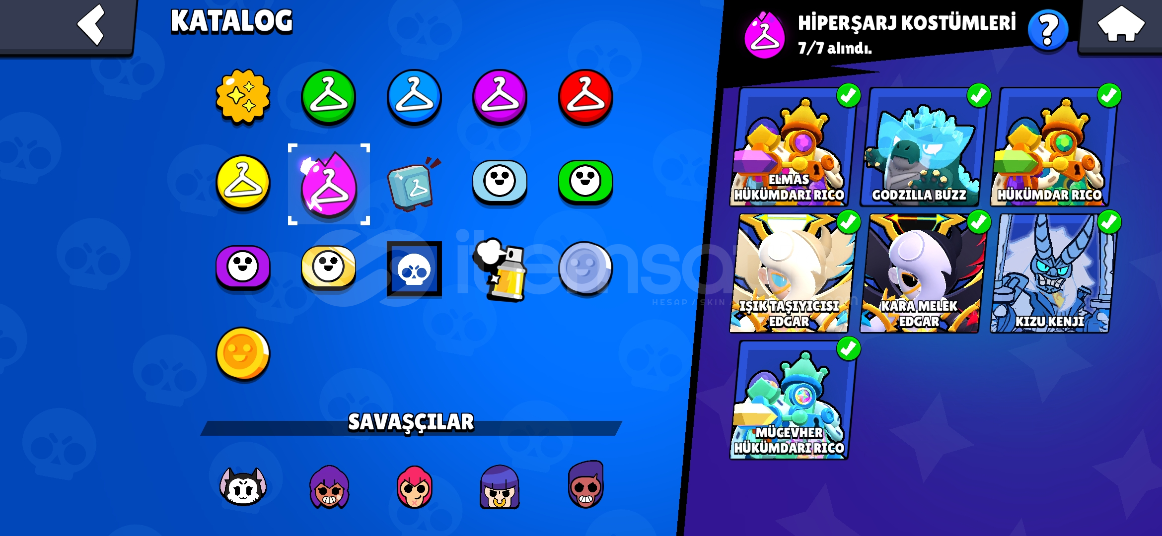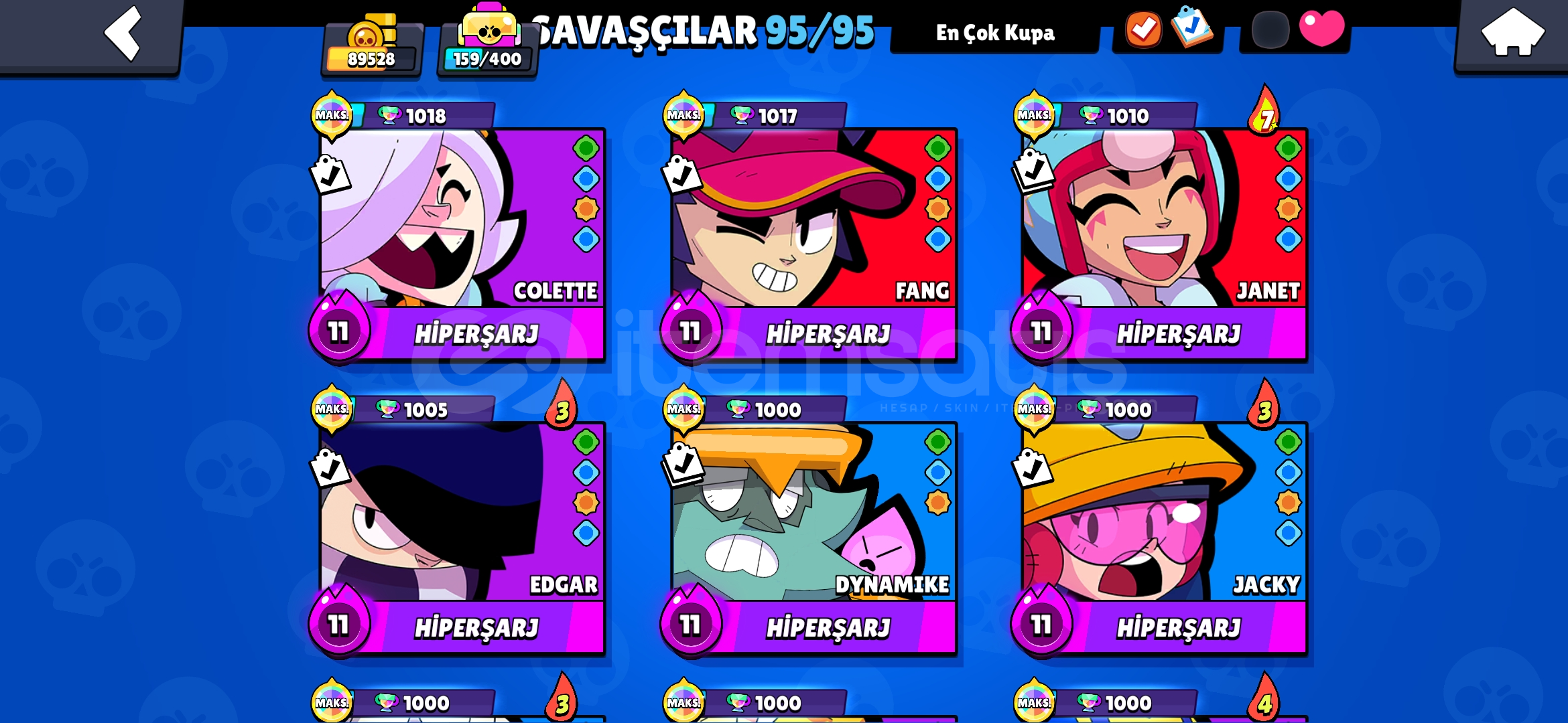 Sayısız elmas ve brawl pluss alınmıştır.70 den fazla karakter 11 seviye ve hiperşarji vardır.Krall Frank kostümü, 2 kere pro pass alınıp fullenerek dynamike ve colt kostümleri tamamlanmıştır. Oni kenji vs daha bir sürü kostüm vardırGerçekten bu fiyata bu seviyede hesap bulamazsınız. Ciddi kişiler iletişime geçerse sevinirim. Sağlıcakla kalın.