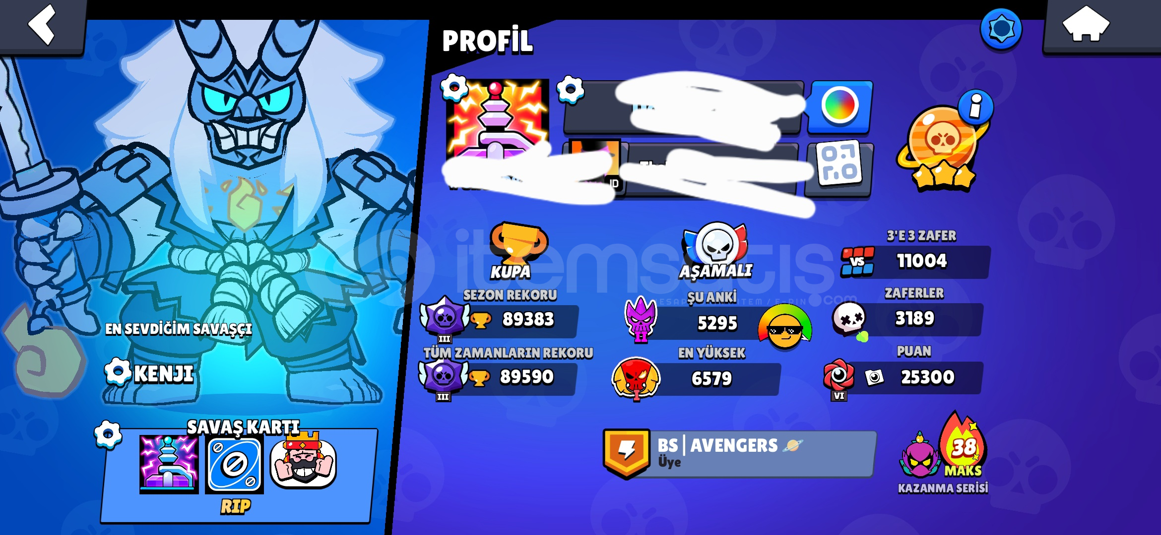 Emek vererek oluşturduğum hesabımı vakit ayıramadığım için satıyorum.Sayısız elmas ve brawl pluss alınmıştır.70 den fazla karakter 11 seviye ve hiperşarji vardır.Krall Frank kostümü, 2 kere pro pass alınıp fullenerek dynamike ve colt kostümleri tamamlanmıştır. Oni kenji vs daha bir sürü kostüm vardırGerçekten bu fiyata bu seviyede hesap bu...