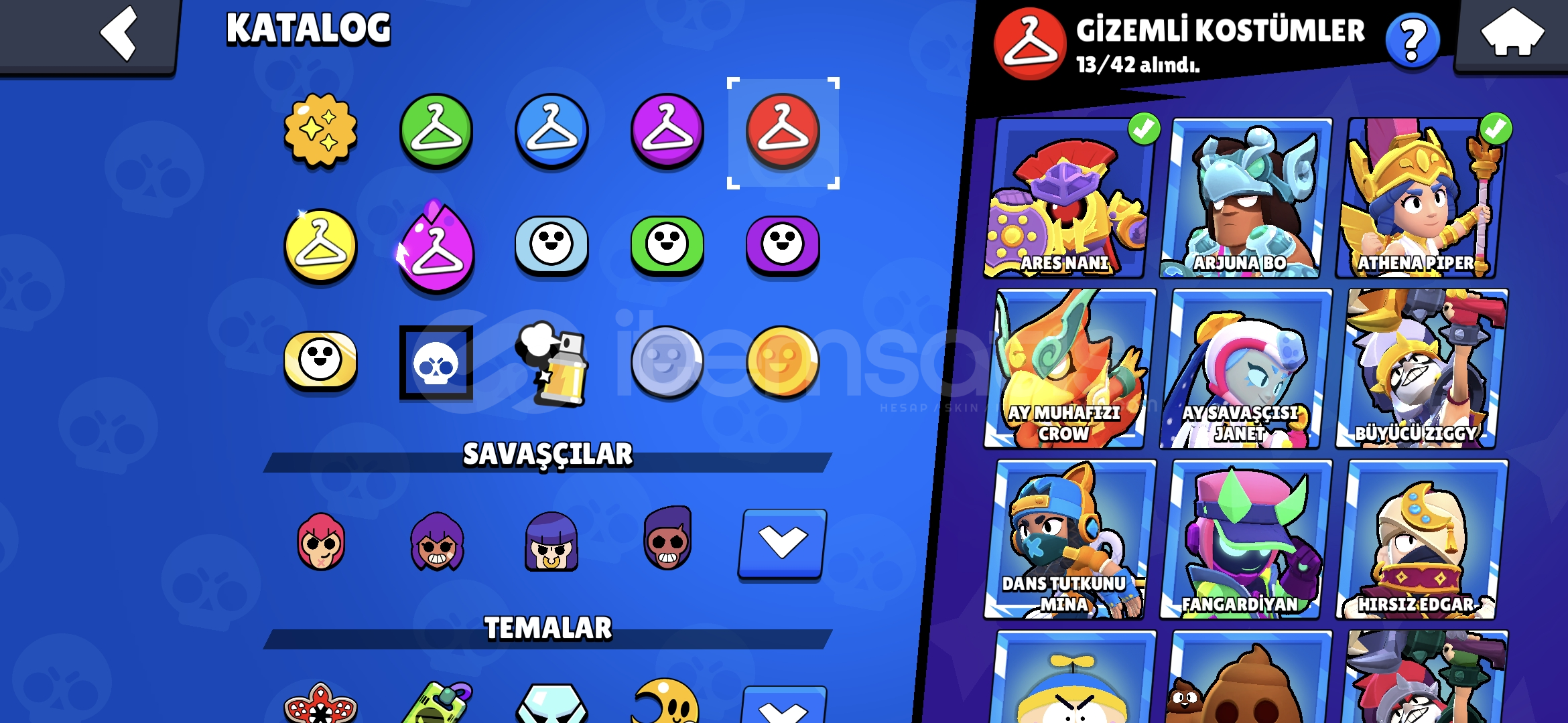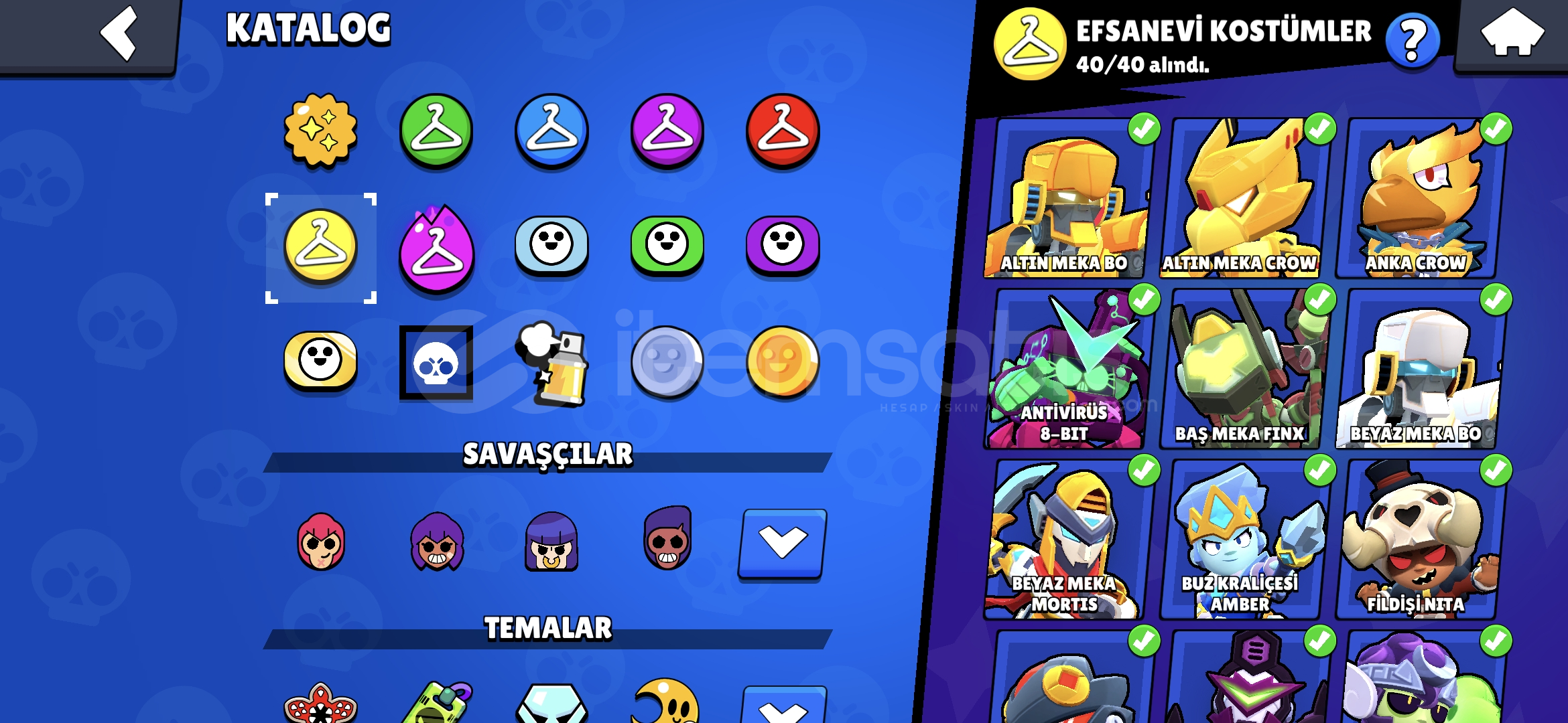 Hesabım 90k kupadır.1 kere master atılmıştır(Yeni sistem)En pahalı savaş kartı profil simgeleri vardırTüm efsanevi skinler açıktırToplamda 370 Skin vardırEk olarak Mavi kral frank de vardırHesapta hesap koruması yokturSatürn 3 şöhretindedir yakında güneş olcakÇok değerli skinler vardır örneğin Ajan colt,Kötü colette,Altın el belle vb.