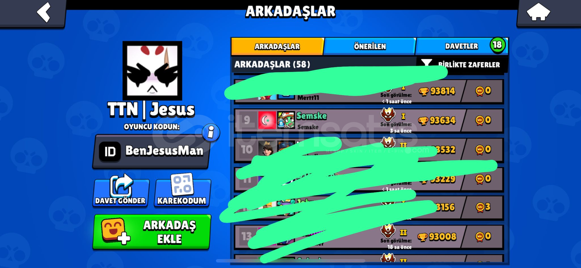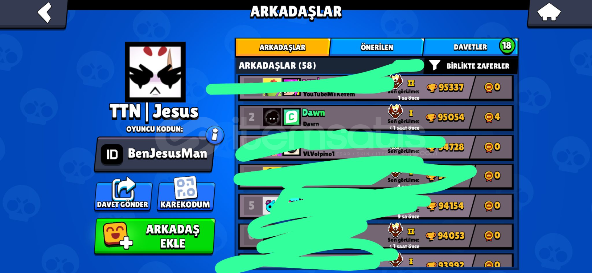 * *Özel Arkadaş Listesi:* *Semske, Dawn, Adionis* gibi tanınmış Brawl Stars YouTuber ve yayıncıları arkadaş listenizde ekli!