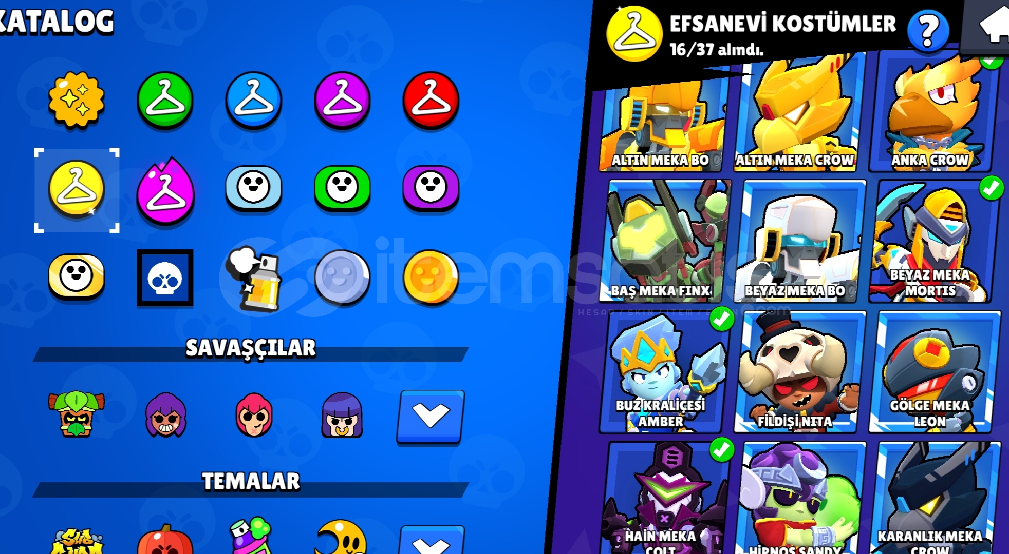PAZARLIK VARDIR 52 MAX KARAKTER 45 HİPERLİ 16 EFSANEVİ KOSTÜM 8 GİZEMLİ KOSTÜM 131 DESTANSI KOSTÜM 26 ÜNVAN ARKADAŞLIK LİSTESİ SAĞLAM 94 KARAKTER SATÜRN 3 ŞÖHRET