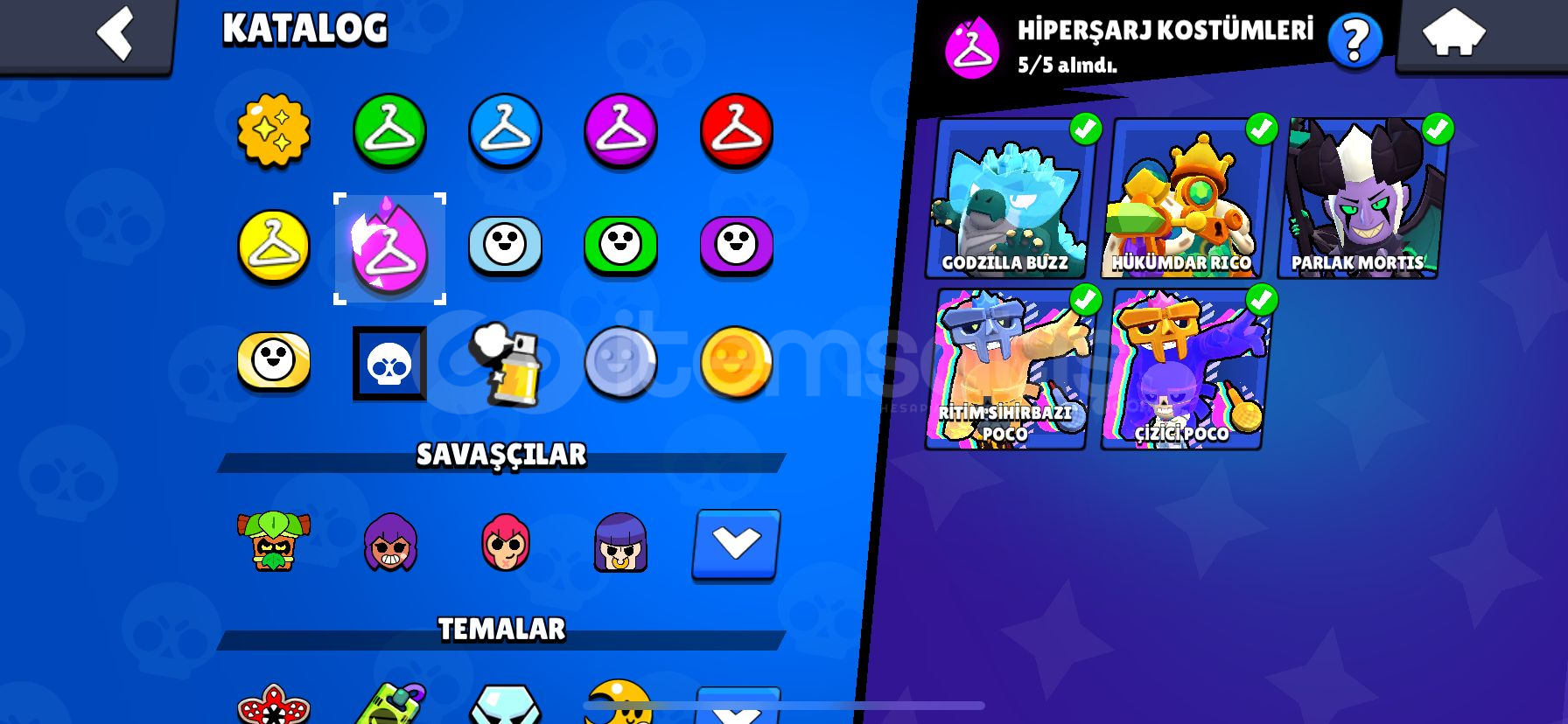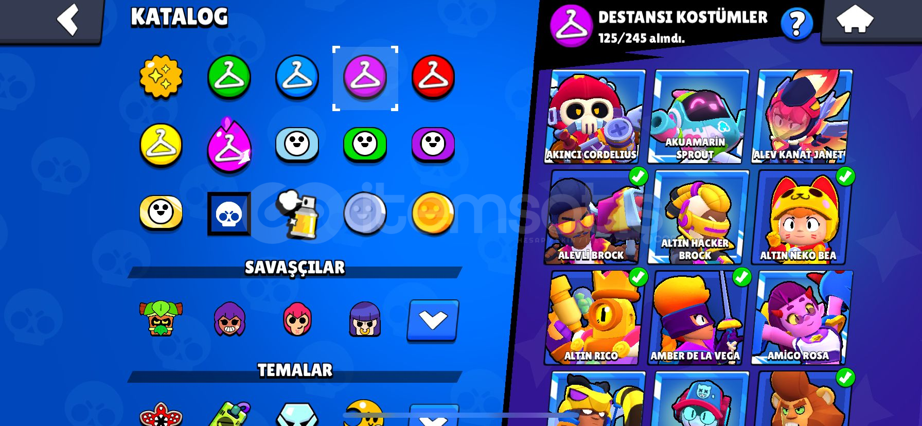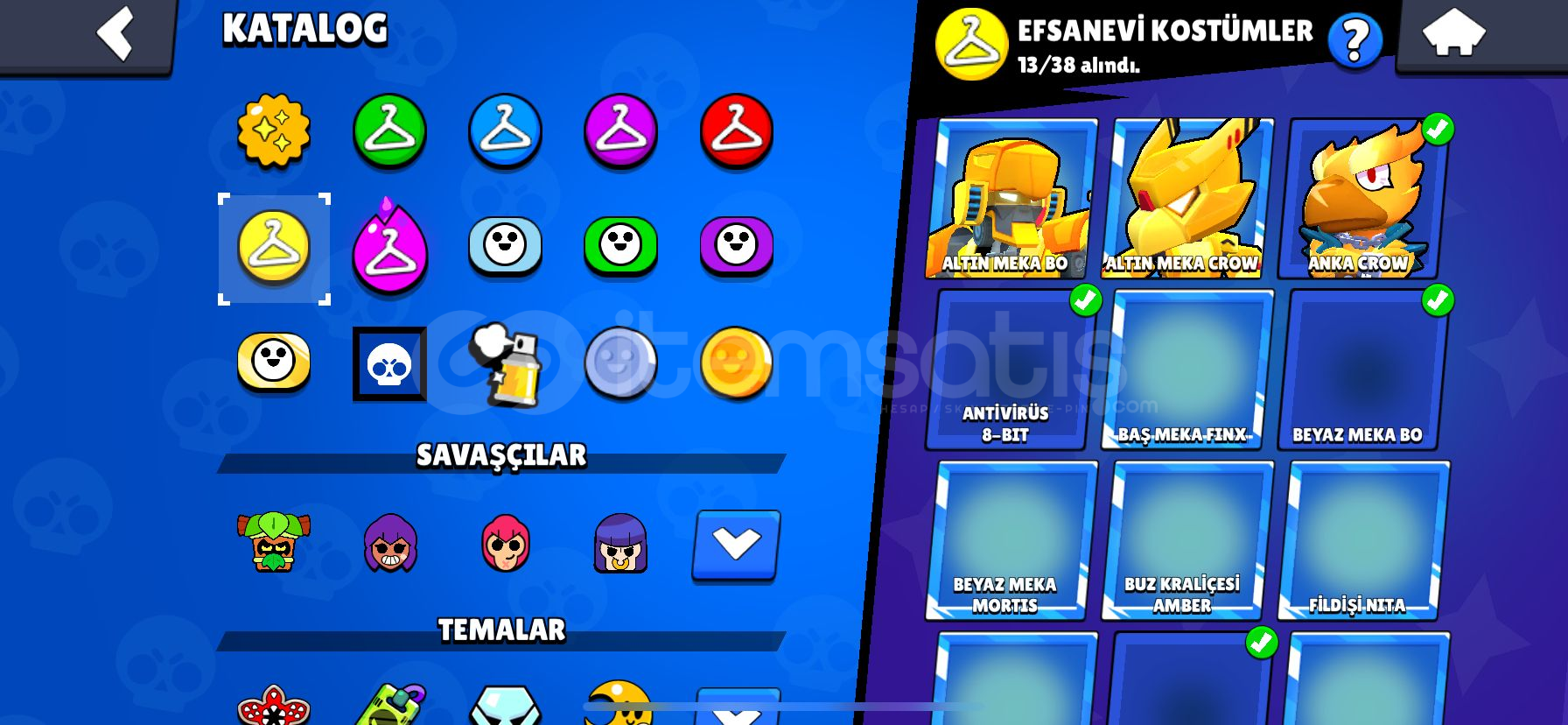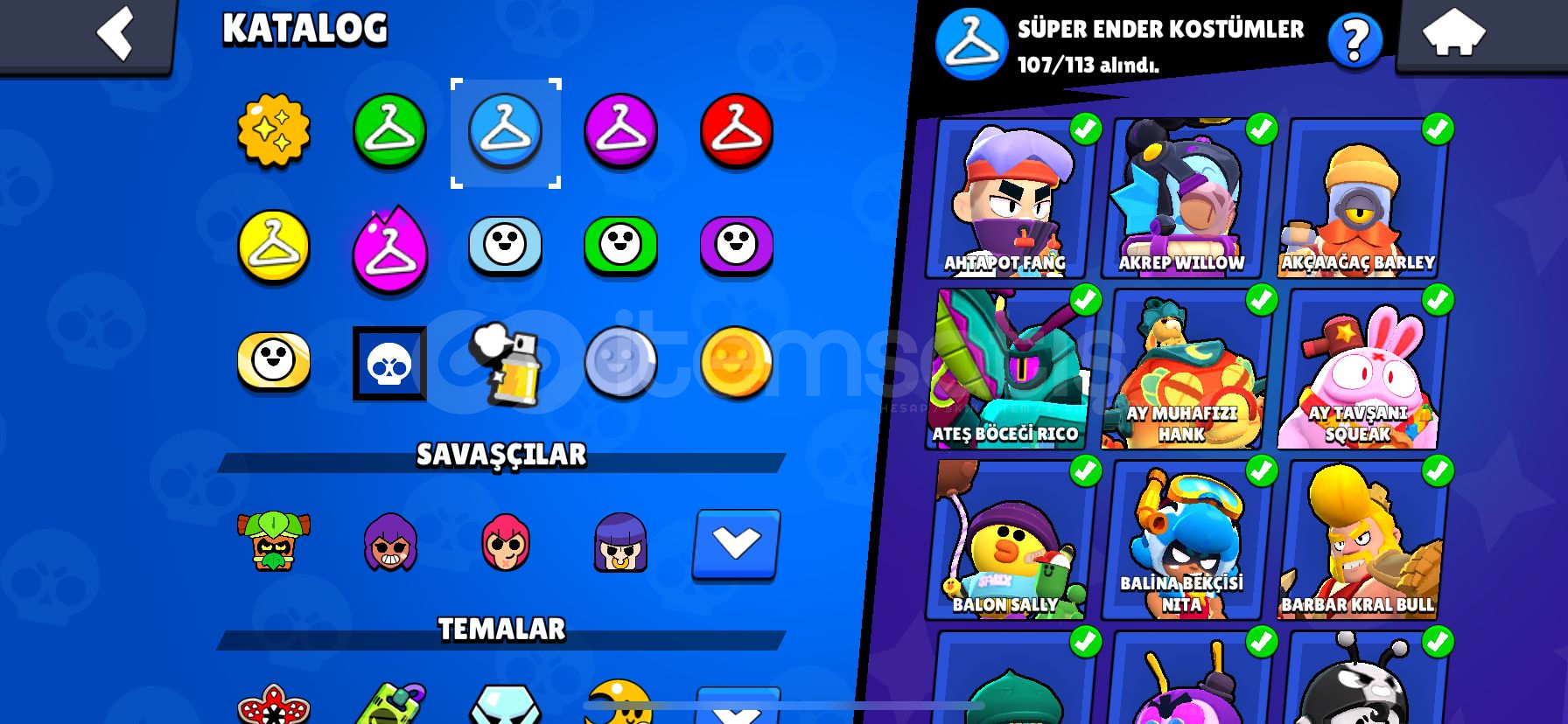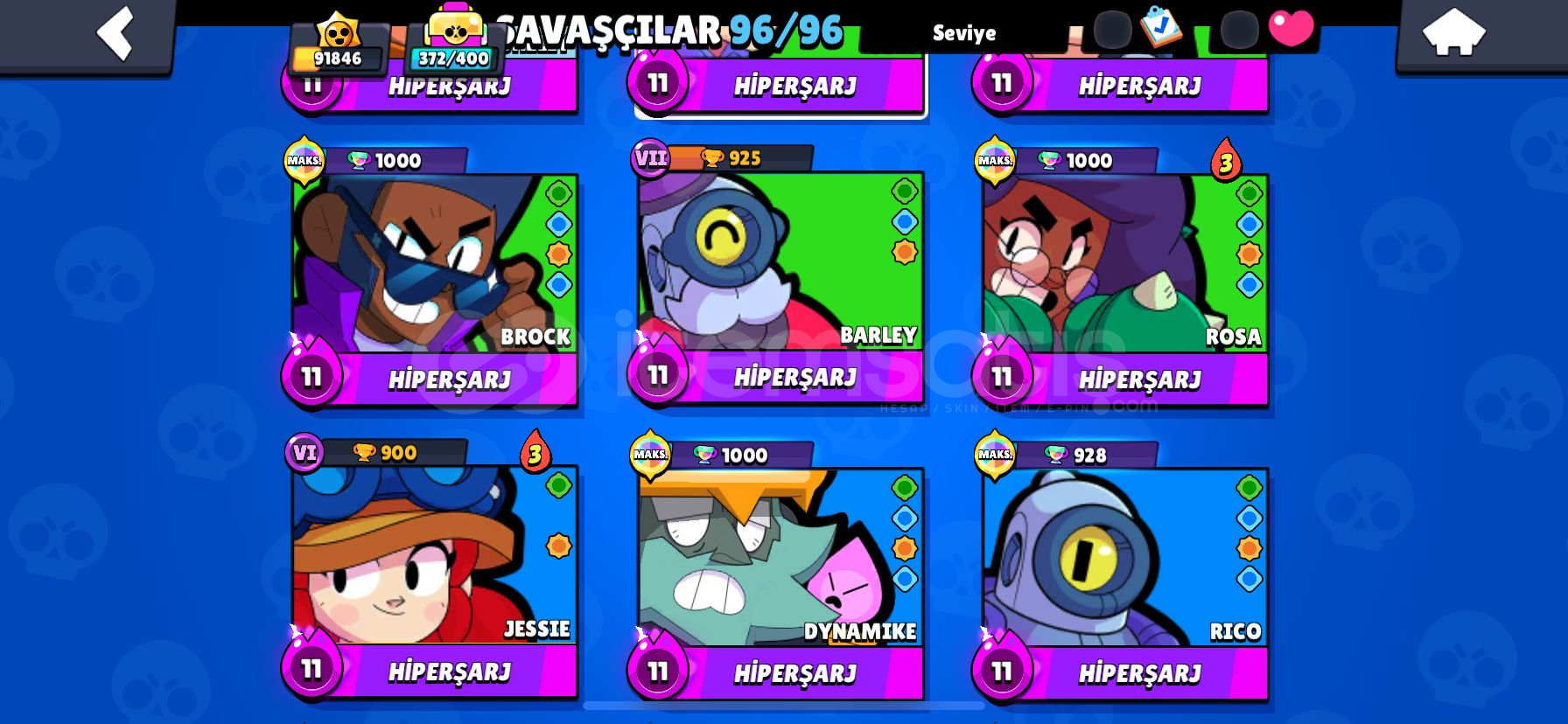 50 hiper 40 11 seciye 6 tane de 10 seviye dolu skin 350 den fazla full karakter 92000 kupa max hesap