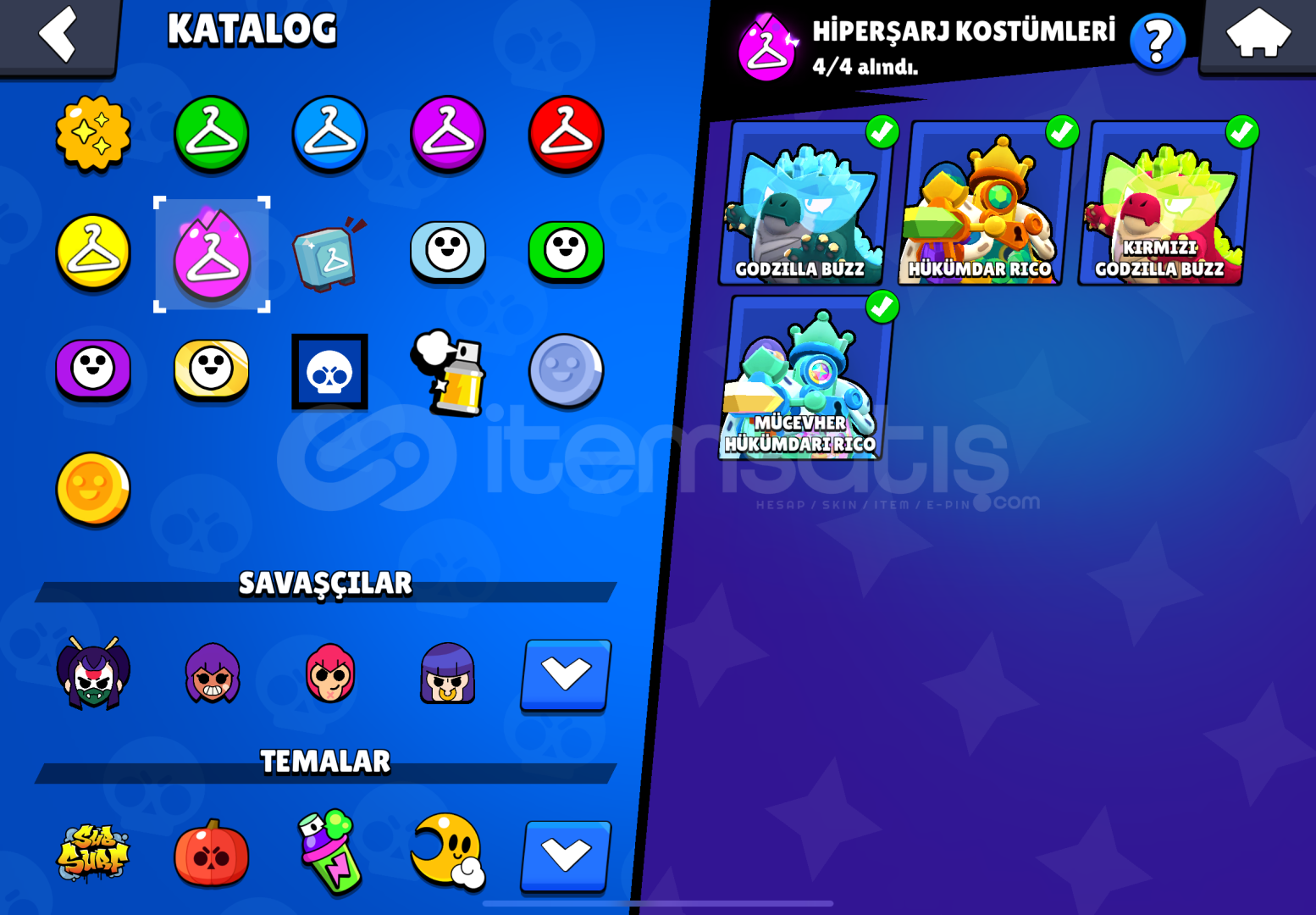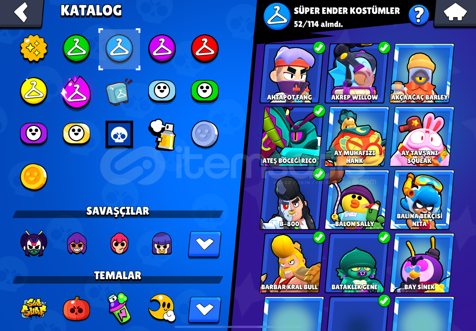 ACİLL SATILIKK;•93 Karakterli•41K Kupalı (Yaklaşık)•4 Hiper Şarjlı, 3 Efsanevi, 4 Gizemli, 46 Destansı, 52 Süper Ender, 62 Ender KOSTÜMLÜ• BRAWL PAs ++ ( ilan yayını sorunu nedeniyle böyle yazılmıştır!) AKTİF•2019 Hesabı•DOLU HESAPTIR…