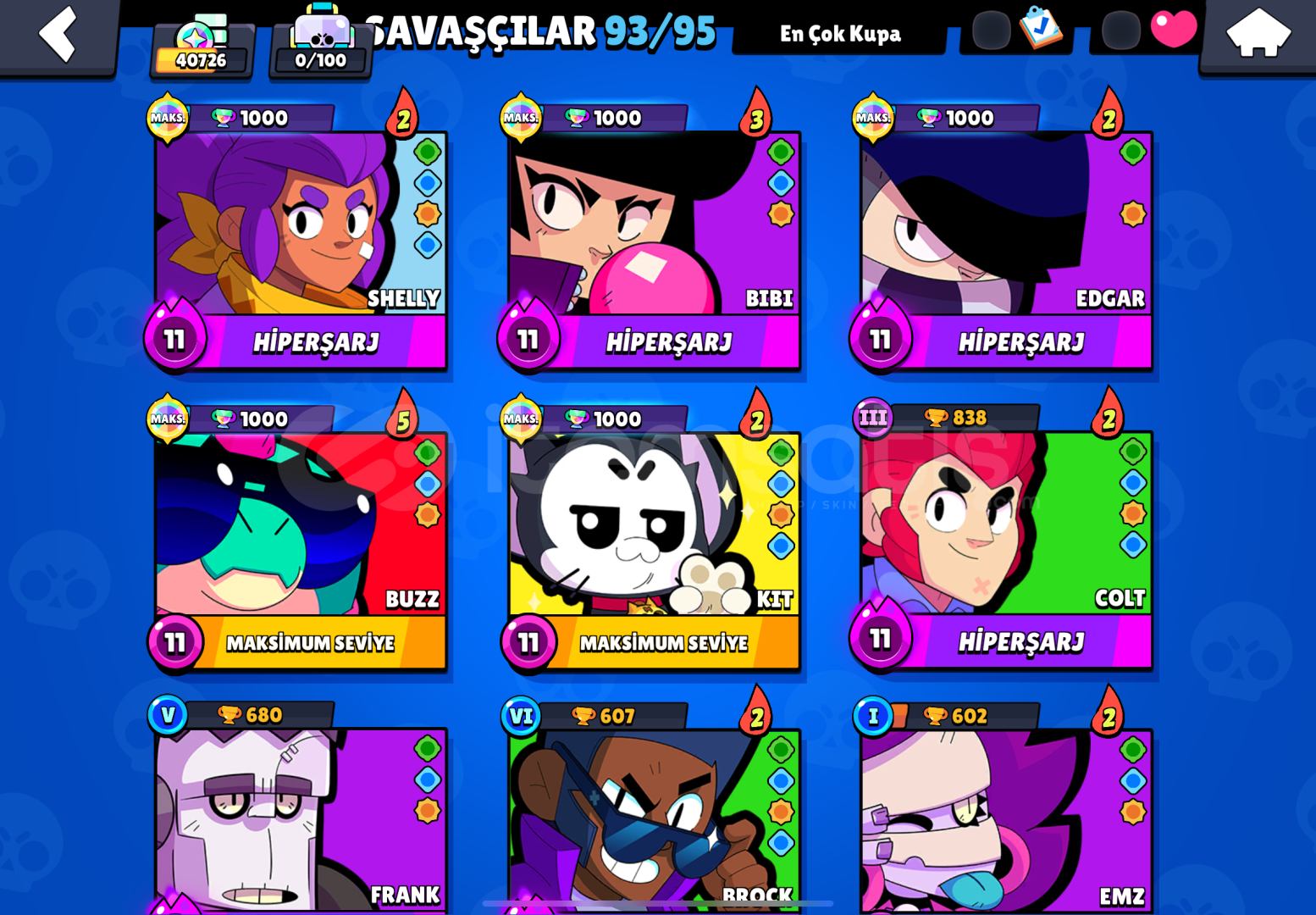 ACİLL SATILIKK;•93 Karakterli•41K Kupalı (Yaklaşık)•4 Hiper Şarjlı, 3 Efsanevi, 4 Gizemli, 46 Destans...